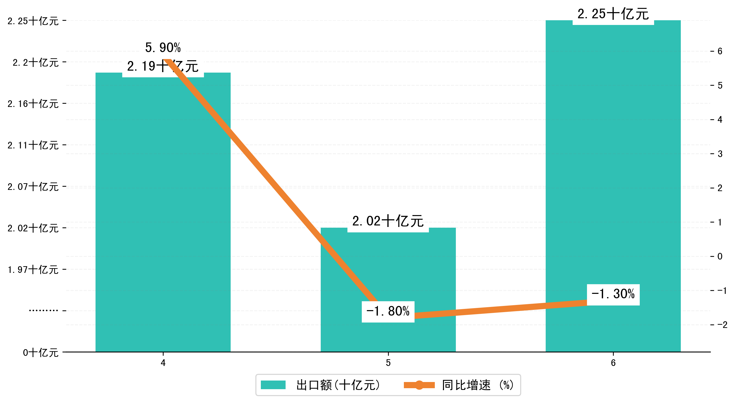 以人民币计,2025年6月海口市出口额为22,5107.2104万元,相比上月增加了2,3128.5002万元;相比上年同期增加了1912.1994万元,同比减少了-1.30%。