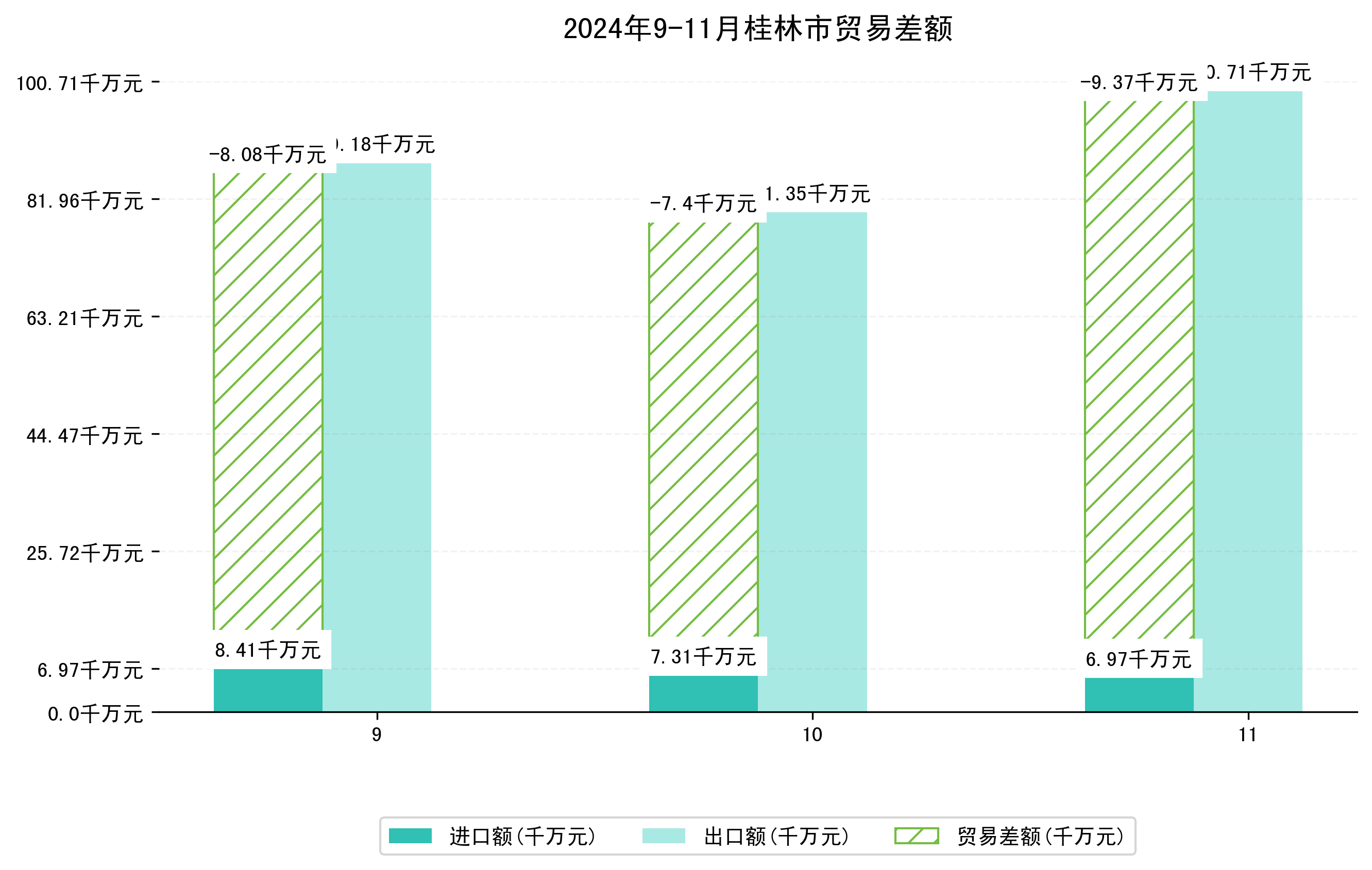 2024年11月桂林市进出口总额及进出口差额统计分析