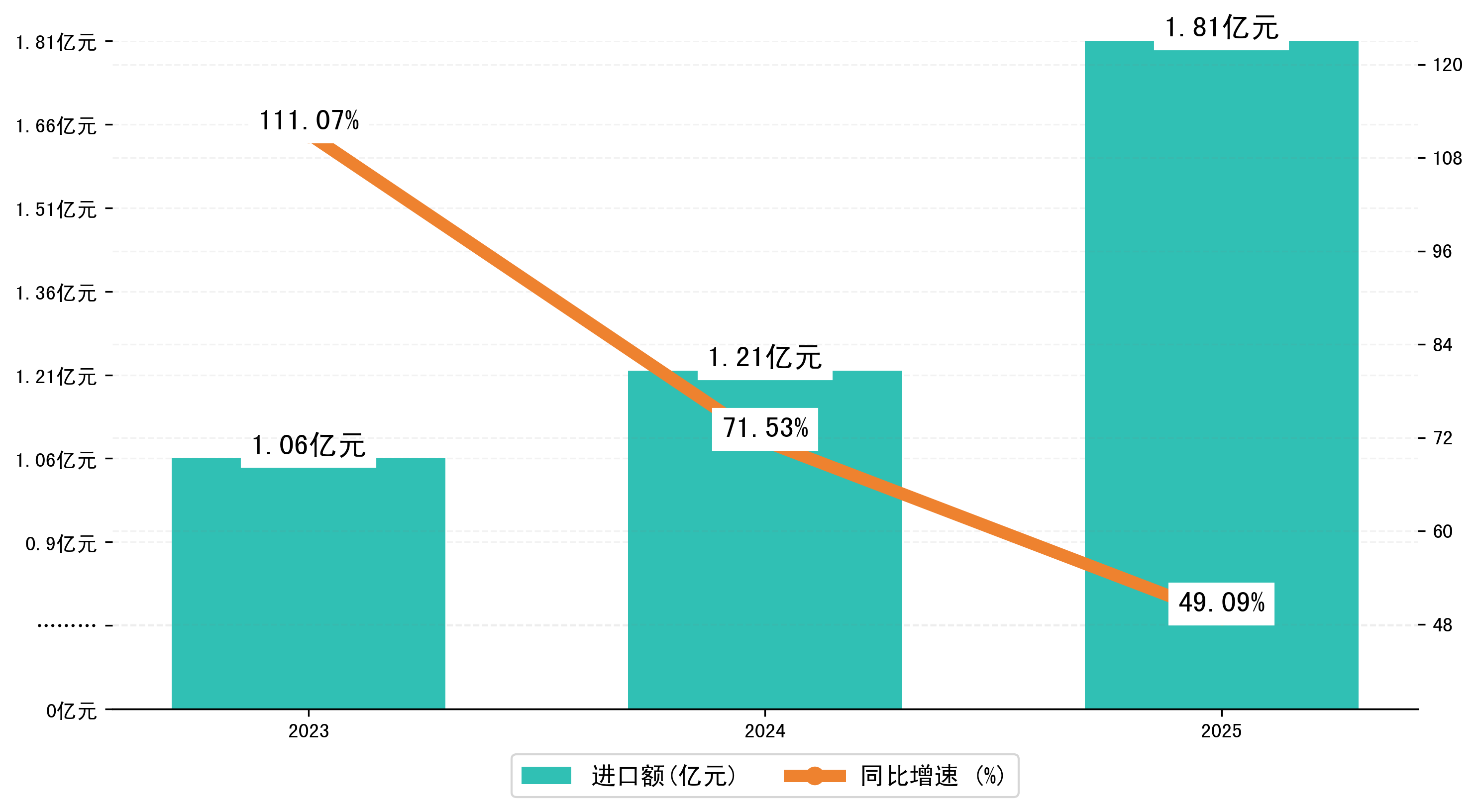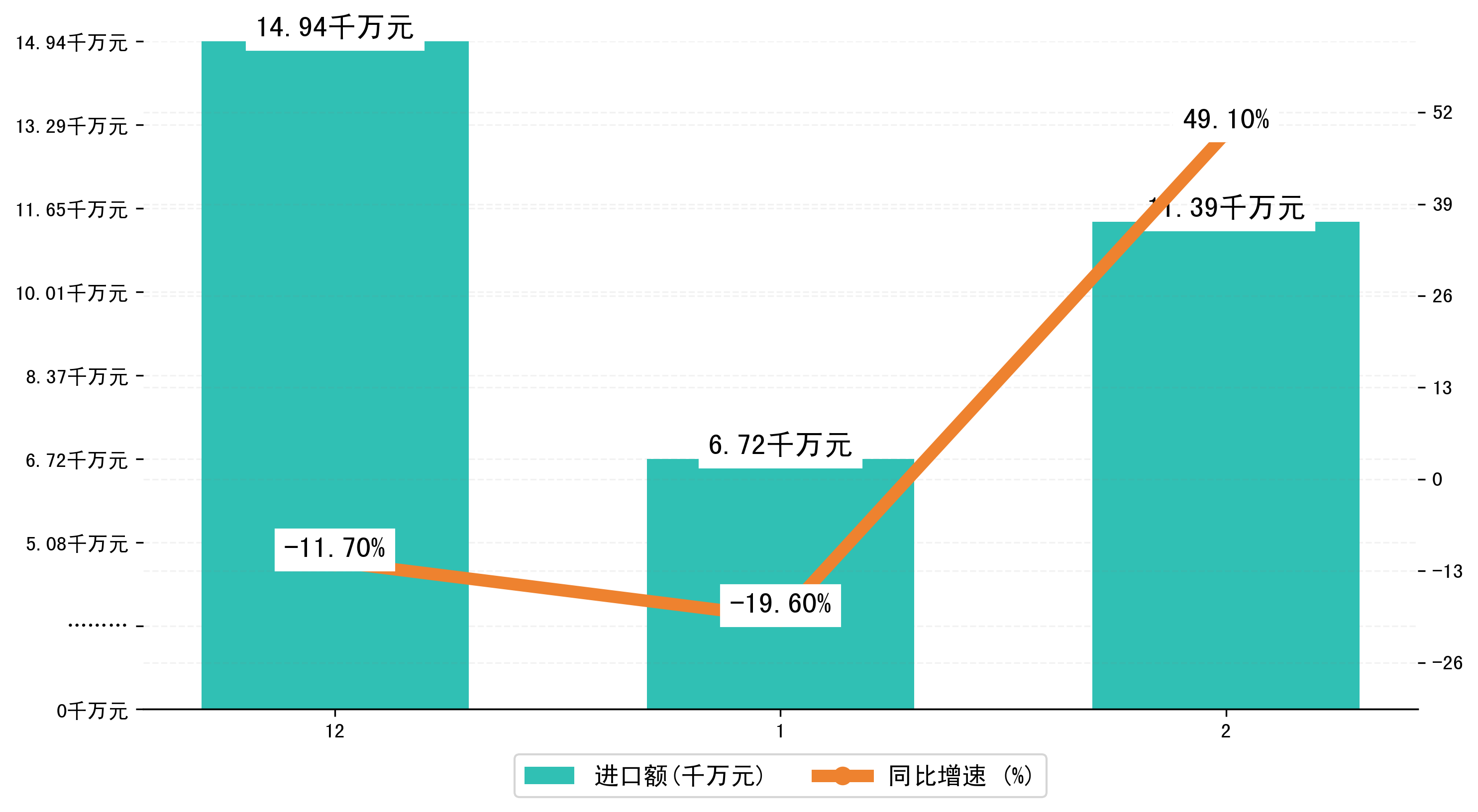 以人民币计,2025年1-2月桂林市进口额为1,8112.2127万元,相比上年同期增加了5963.3792万元,同比增加了49.10%。