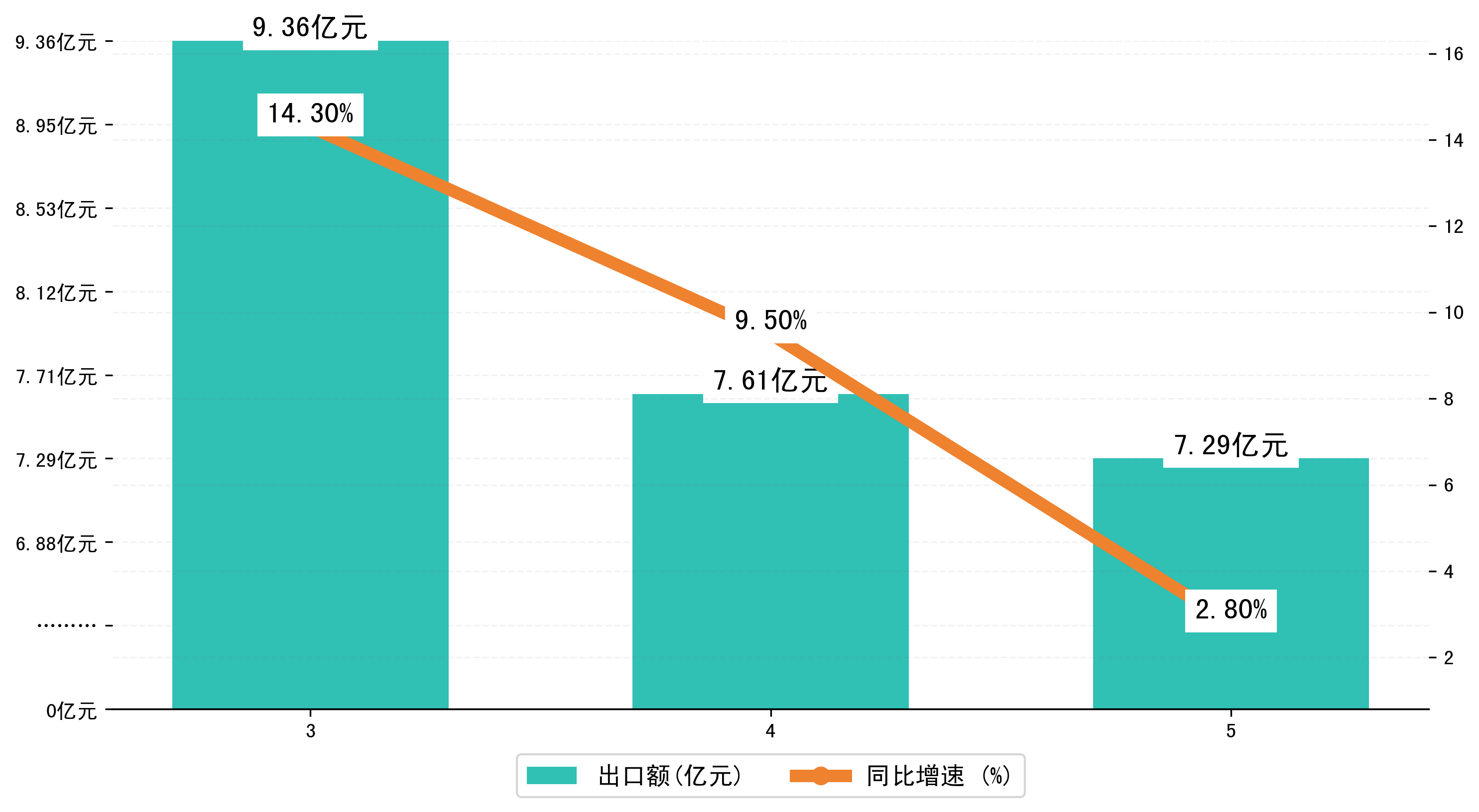 以人民币计,2025年5月桂林市出口额为7,2920.7365万元,相比上月减少了3201.8849万元;相比上年同期减少了1,8193.8947万元,同比增加了2.80%。