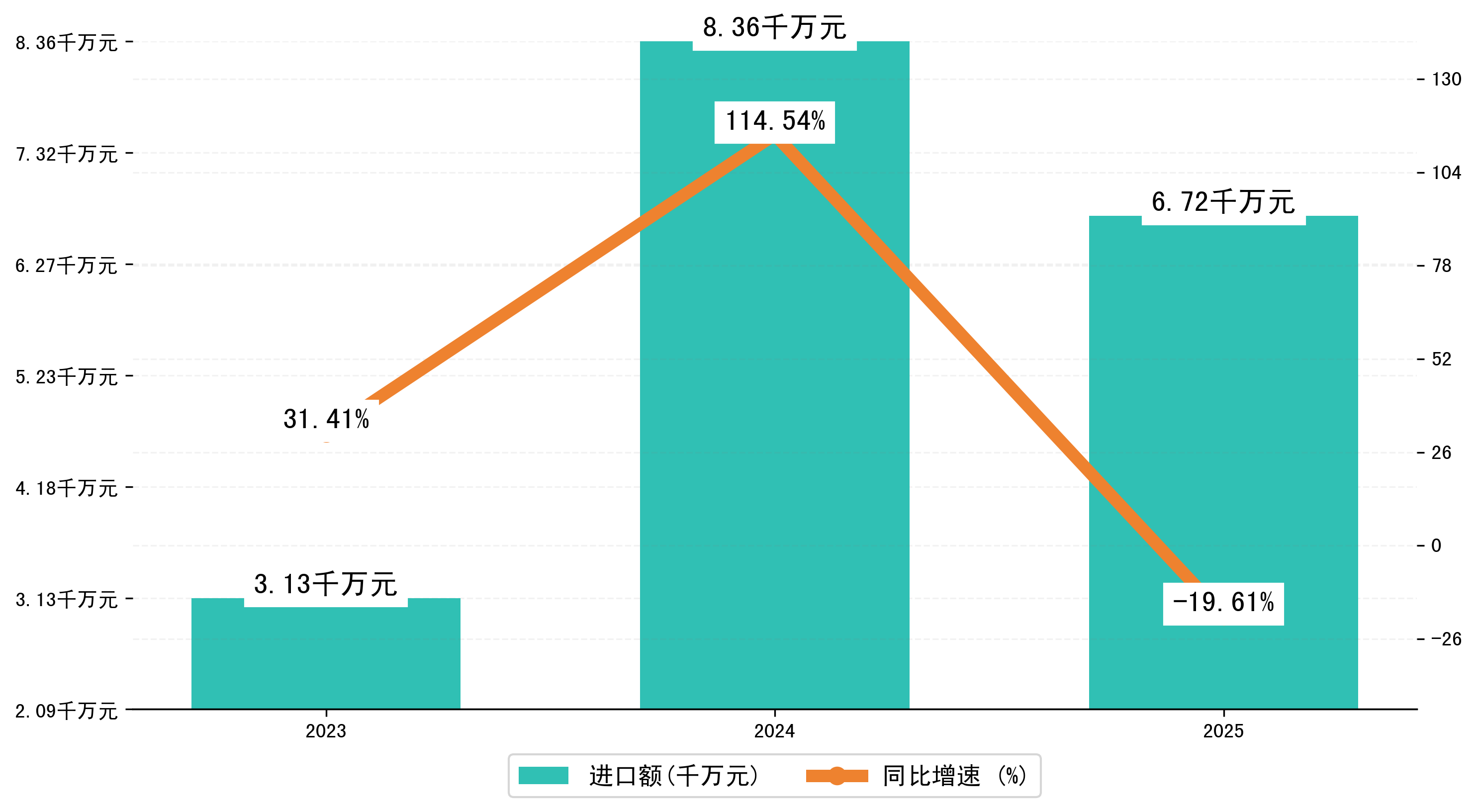 以人民币计,2025年1月桂林市进口额为6724.3156万元,相比上月减少了8213.3244万元;相比上年同期减少了1640.3814万元,同比减少了-19.60%。