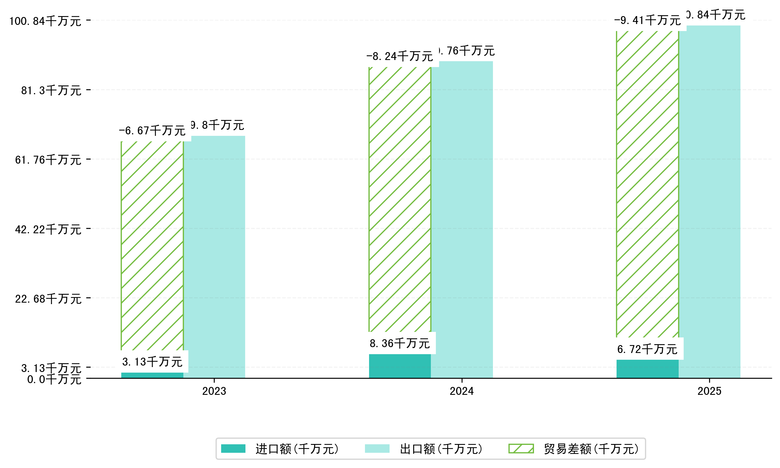 以人民币计,2025年1-1月桂林市贸易差额为9,4119,9883万元(贸易顺差),相比上年同期增加了1,1722,2037万元,同比增加14.23%。