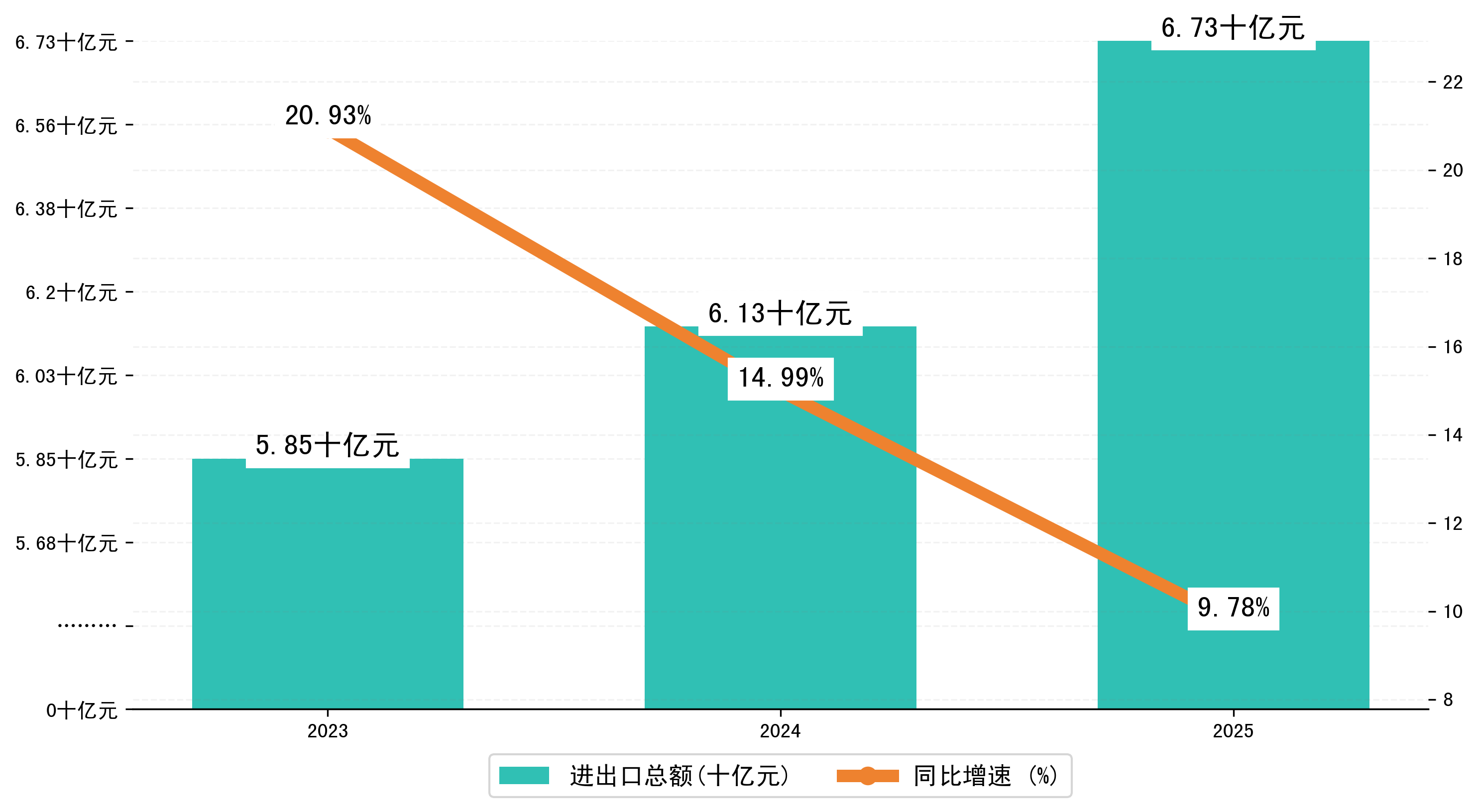 以人民币计,2025年7月桂林市进出口总额为11,6422.3451万元,相比上月增加了2,2429.792万元;相比上年同期增加了2,8555.3297万元,同比增加了9.80%。