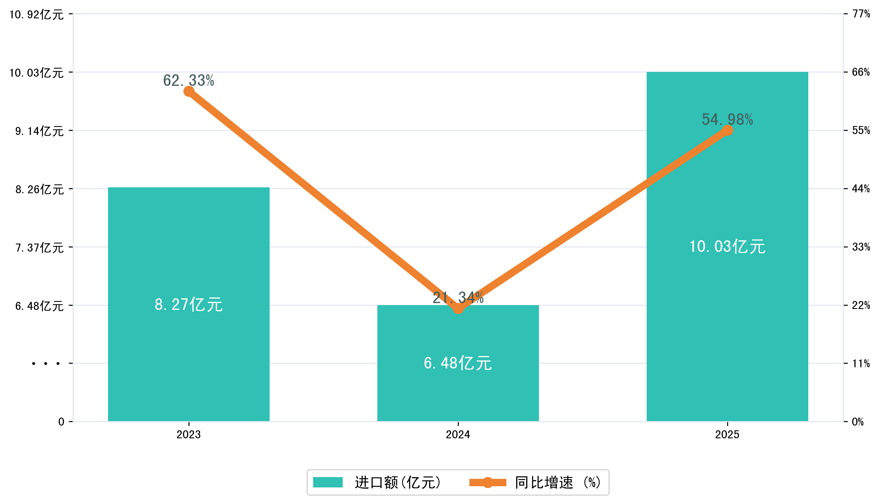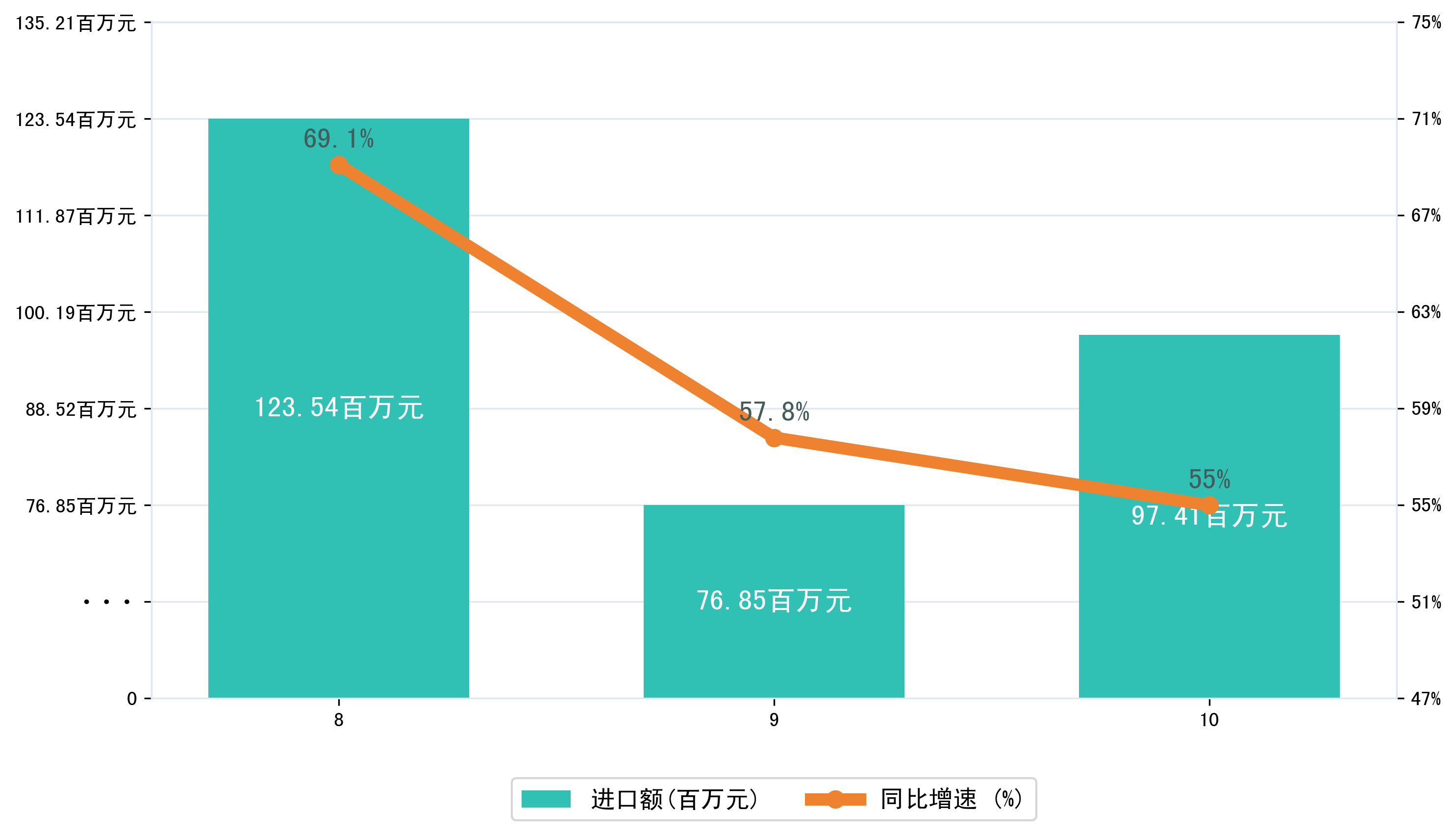 以美元计,2025年1-10月桂林市进口额为1,4001.7684万美元,相比上年同期增加了4897.1801万美元,同比增加53.80%。