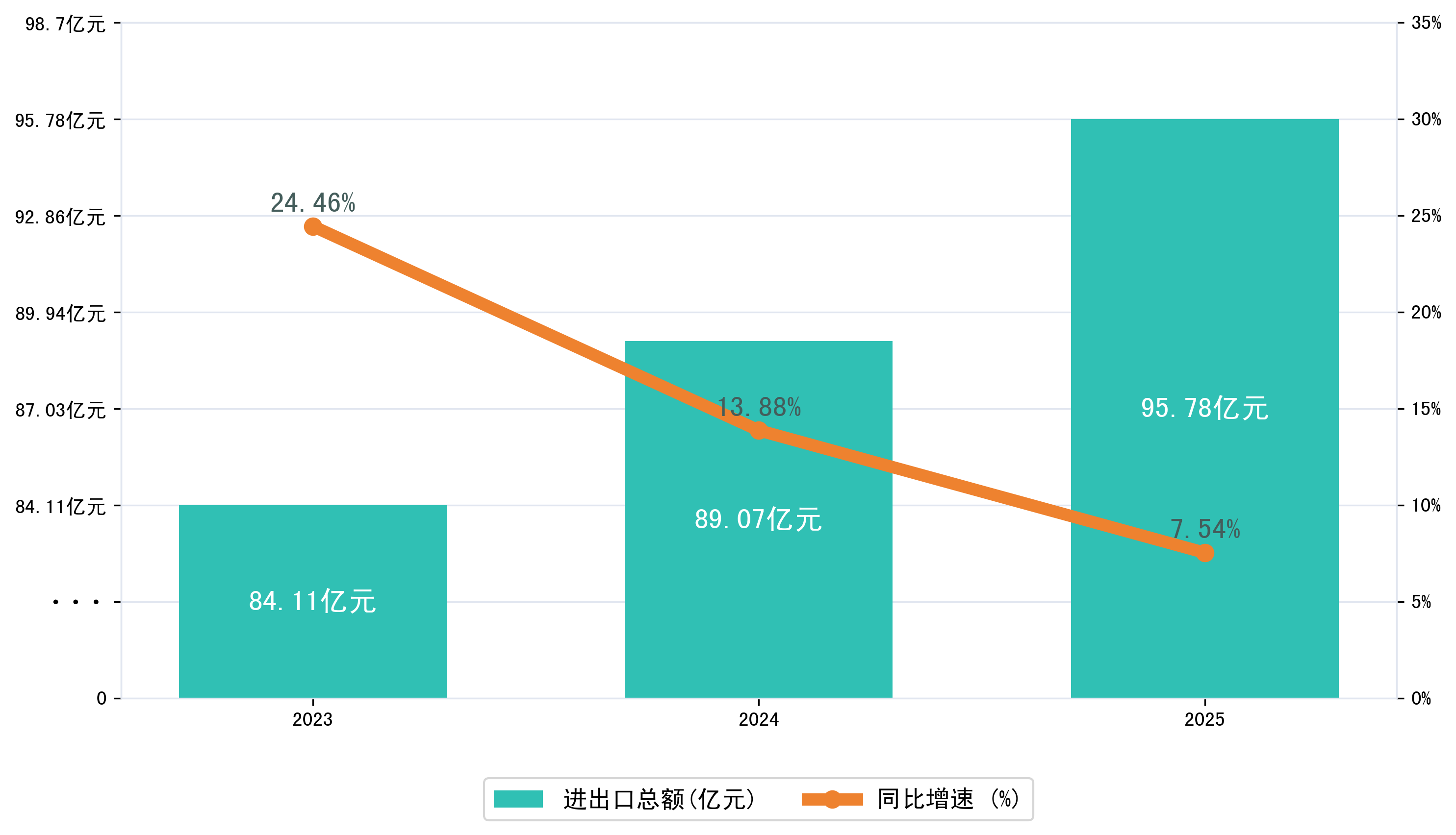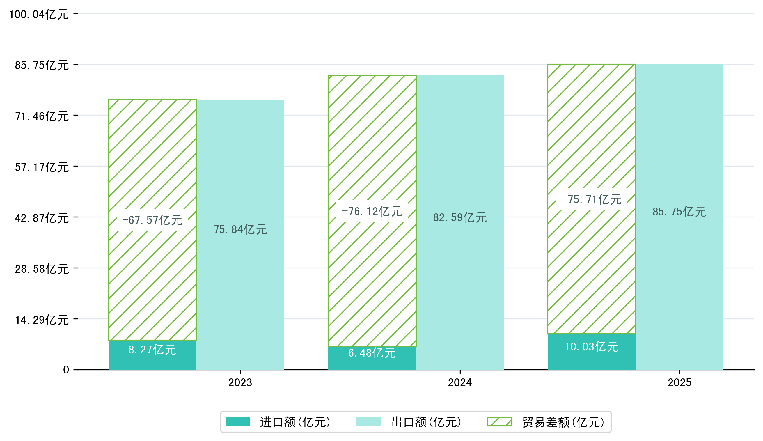 以人民币计,2025年1-10月桂林市贸易差额为75,7135,6508万元(贸易顺差),相比上年同期减少了4037,3319万元,同比减少-0.53%。