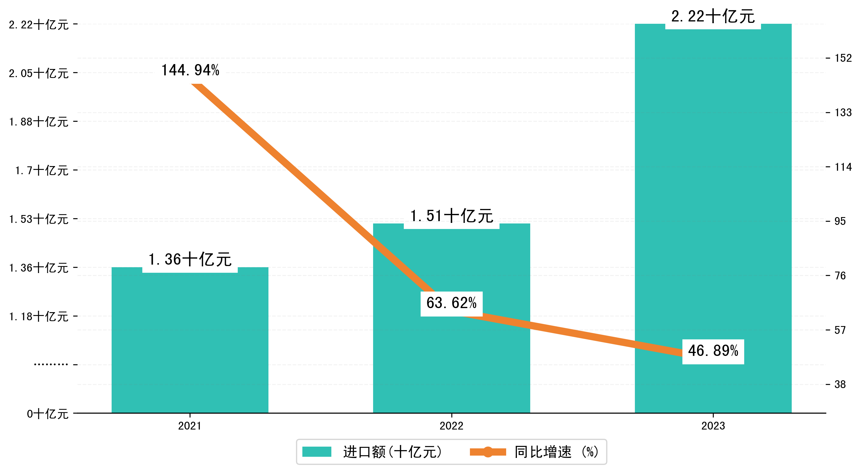 以人民币计,2023年1-2月贵阳市进口额为22,2108.7453万元,相比上年同期增加了7,0904.8476万元,同比增加了46.80%。