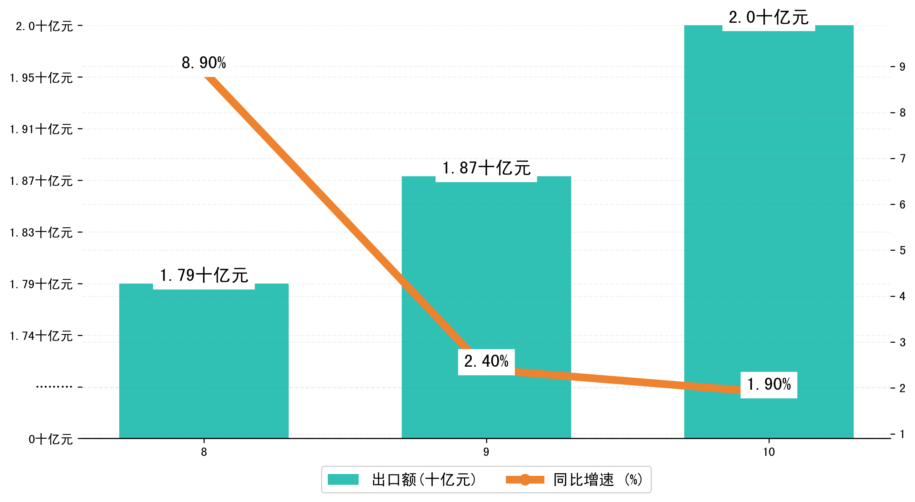 (图二:2023年8-10月贵阳市出口额)