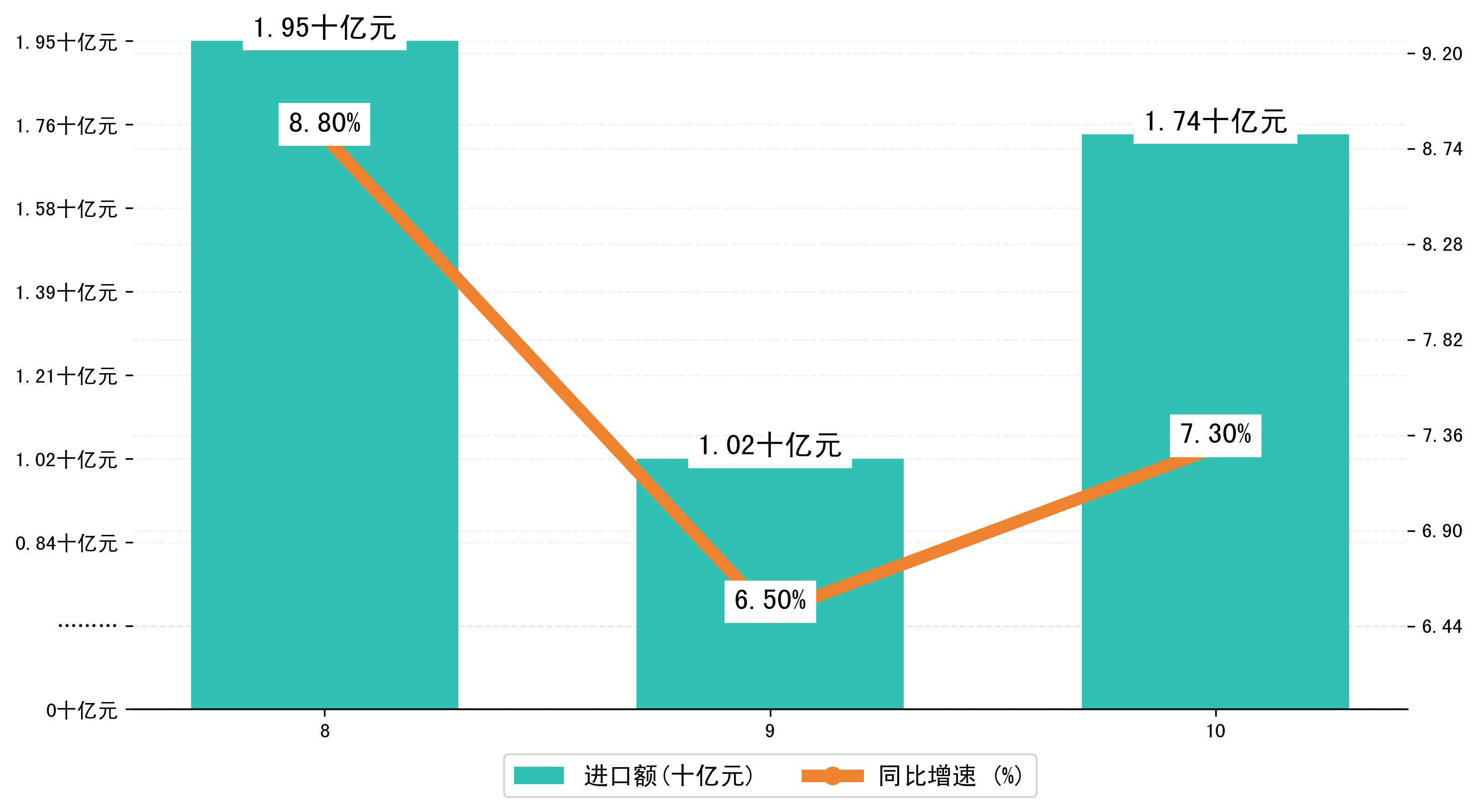 (图三:2023年8-10月贵阳市进口额)