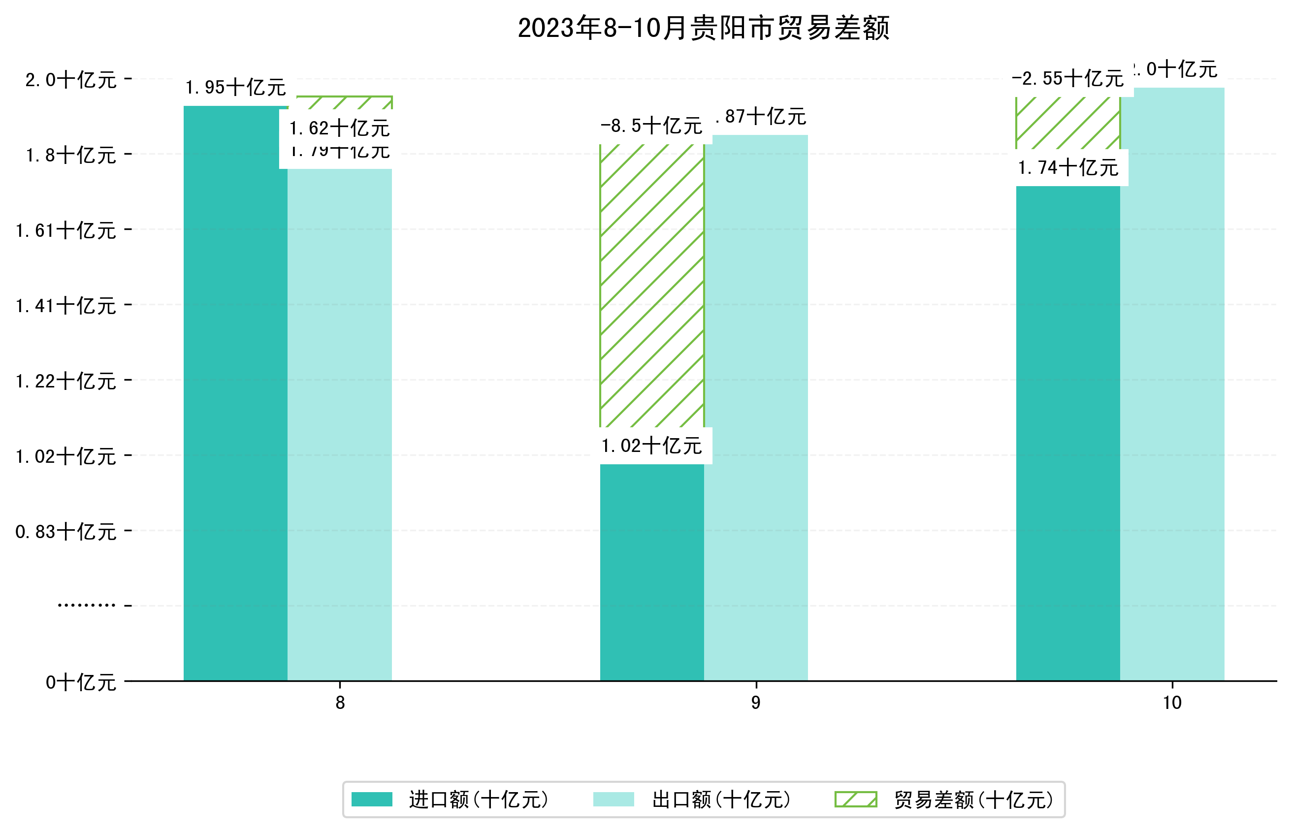 (图四:2023年8-10月贵阳市贸易差额)