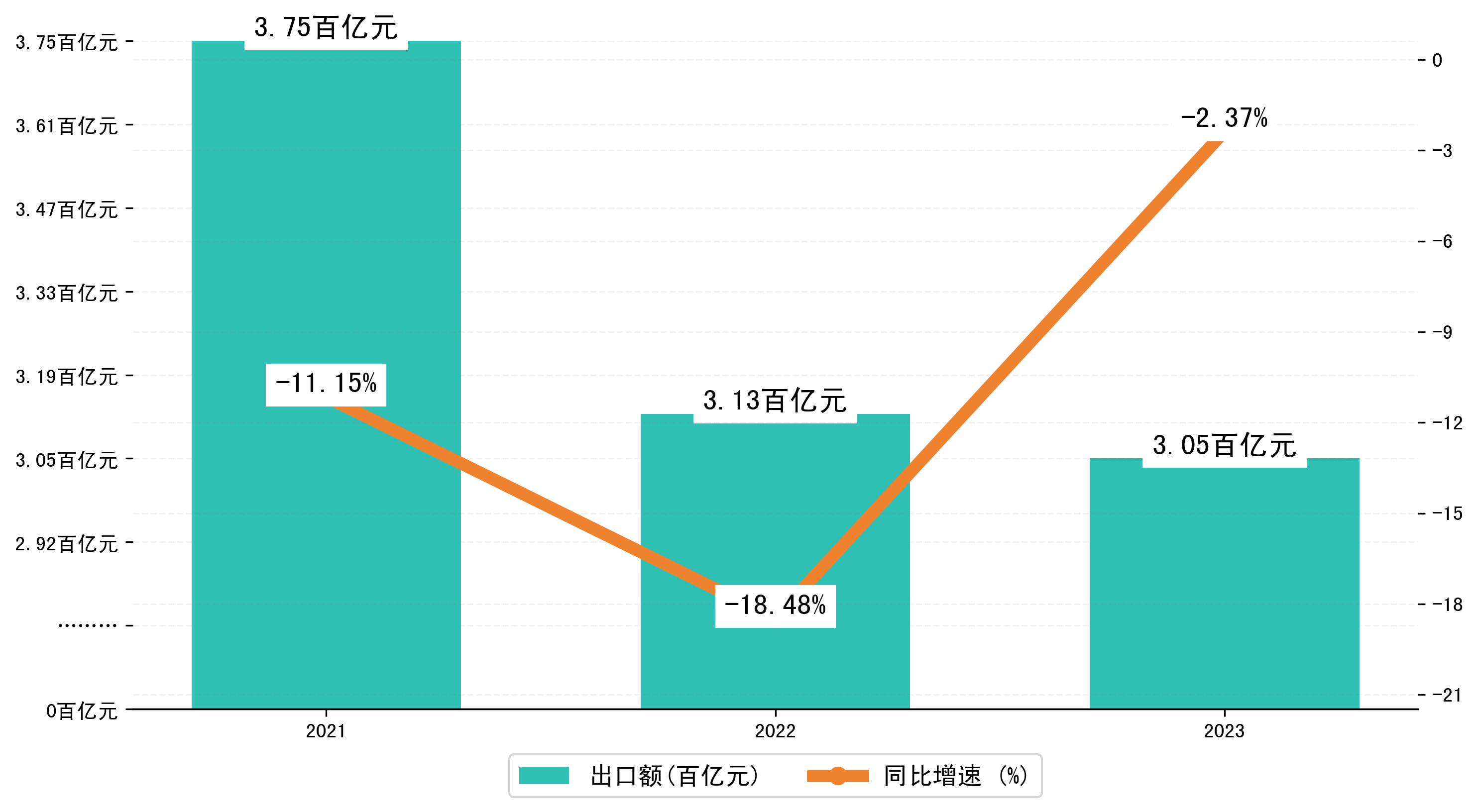 以人民币计,2023年1-12月贵阳市出口额为305,3631.0338万元,相比上年同期减少了7,4091.2125万元,同比增加了22.90%。