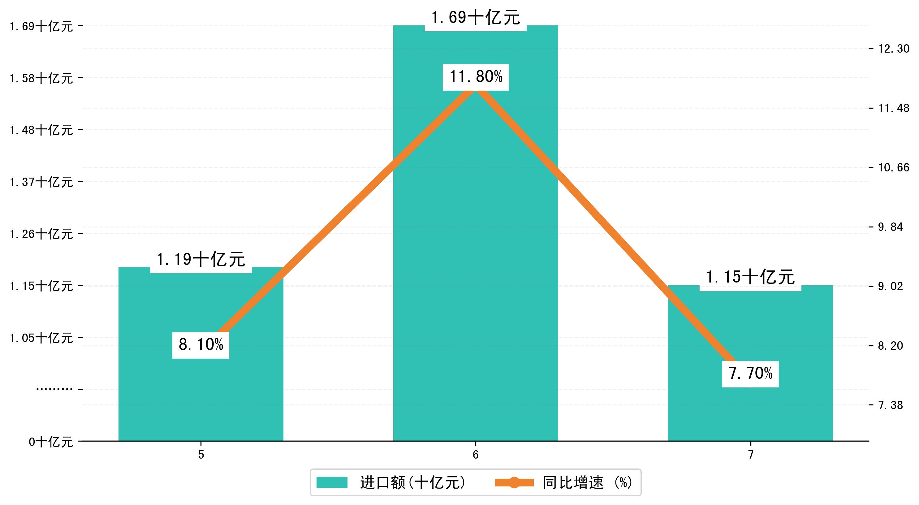 以美元计,2024年7月贵阳市进口额为1,6213.1641万美元,相比上月减少了7556.7065万美元;相比上年同期减少了2417.451万美元,同比增加5.10%。