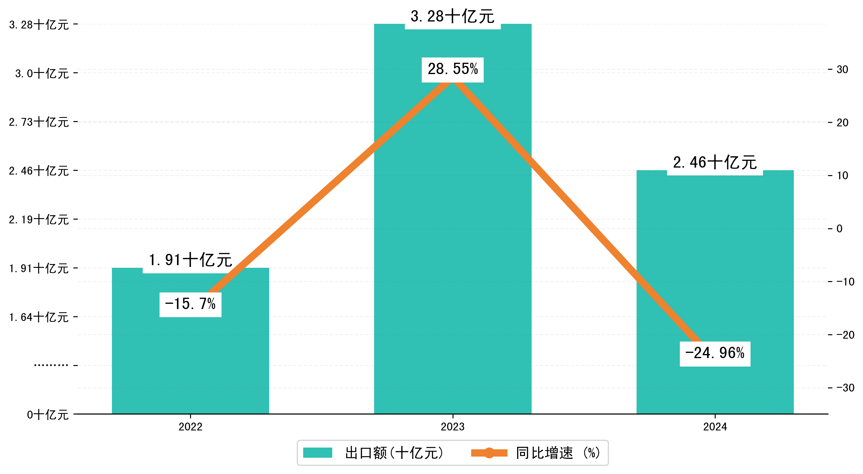以人民币计,2024年1-1月贵阳市出口额为24,5894.2067万元,相比上年同期减少了8,1793.5095万元,同比增加了31.60%。