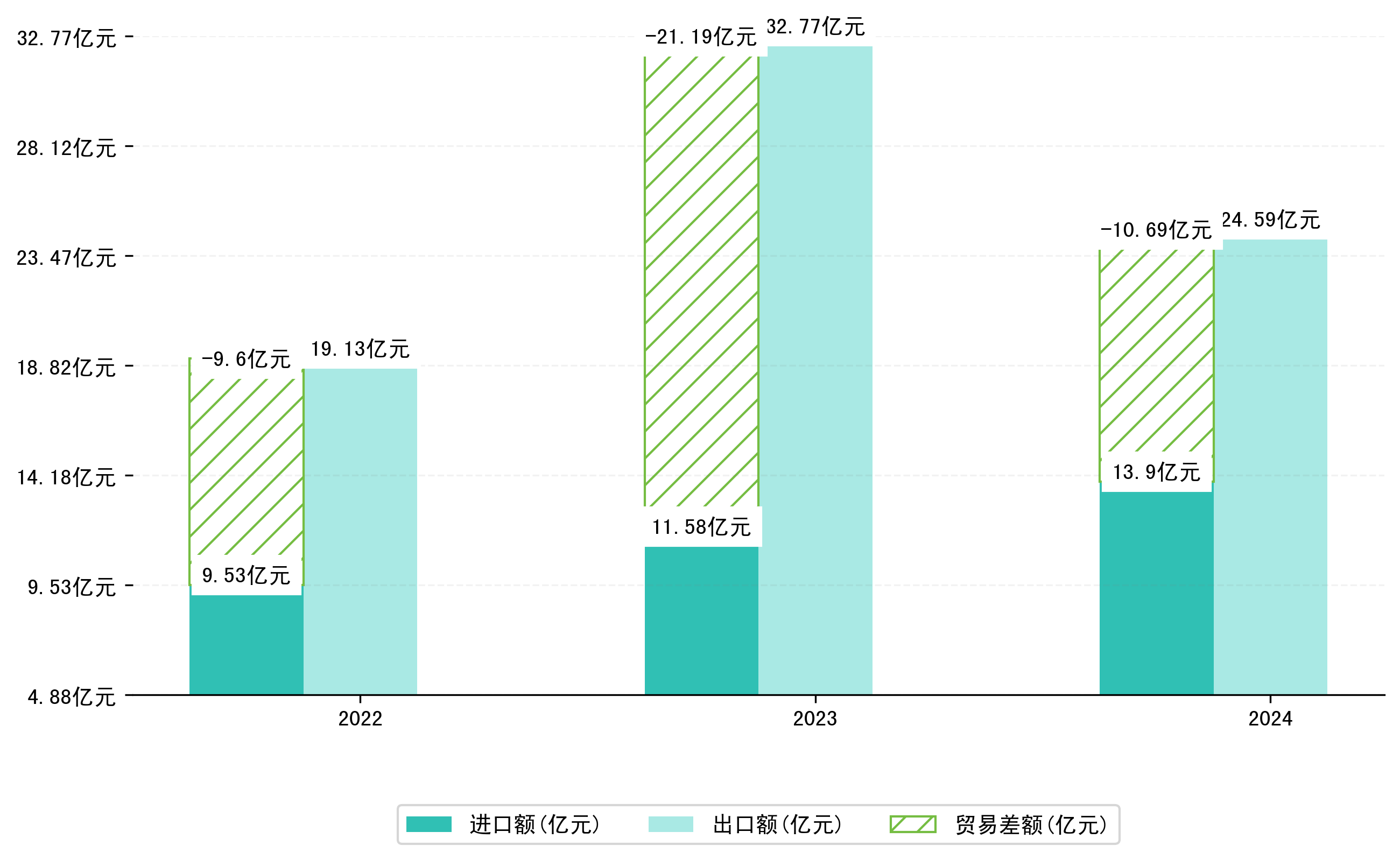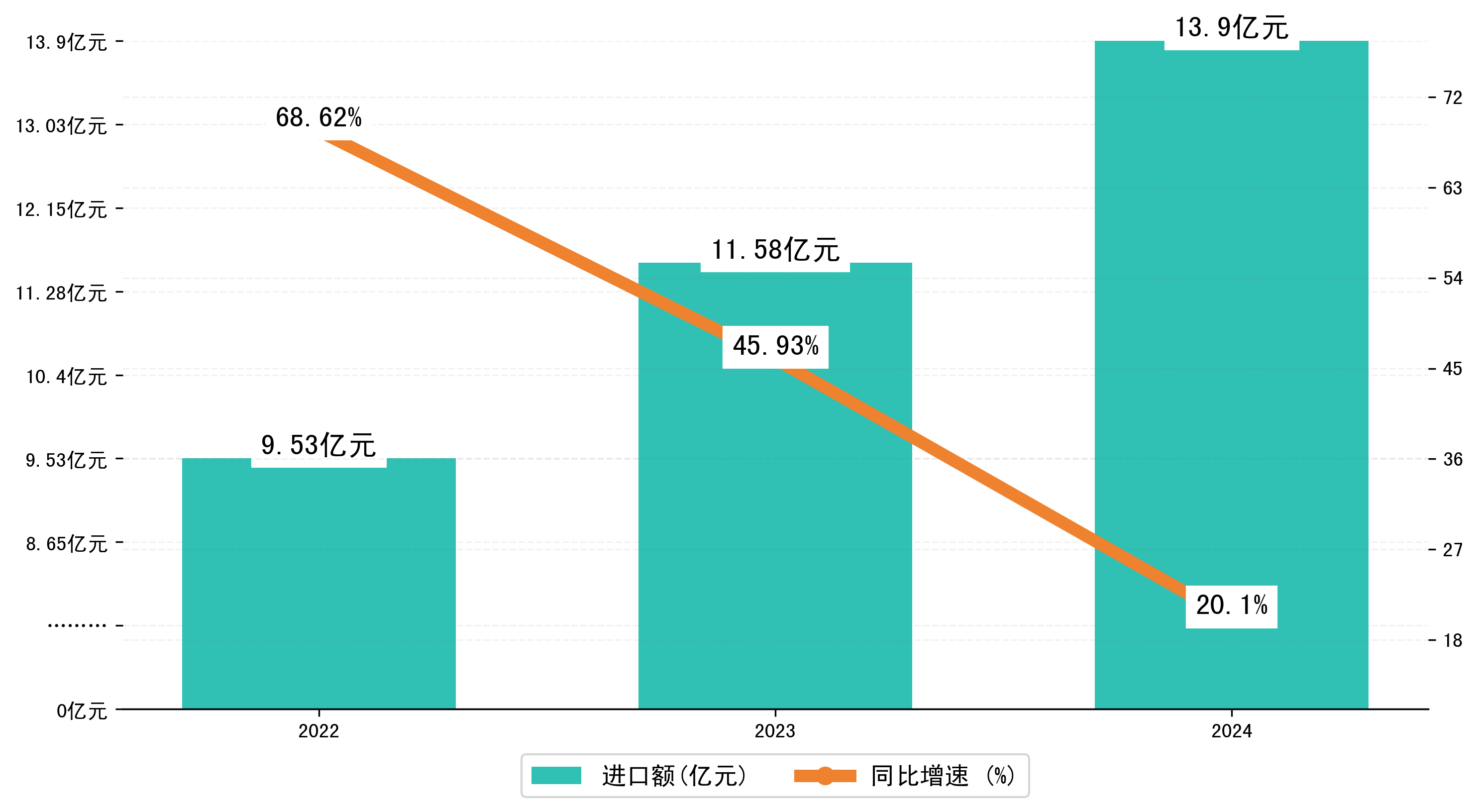 以人民币计,2024年1月贵阳市进口额为13,9043.5588万元,相比上月减少了1,1269.687万元;相比上年同期增加了2,3274.8428万元,同比增加了23.10%。