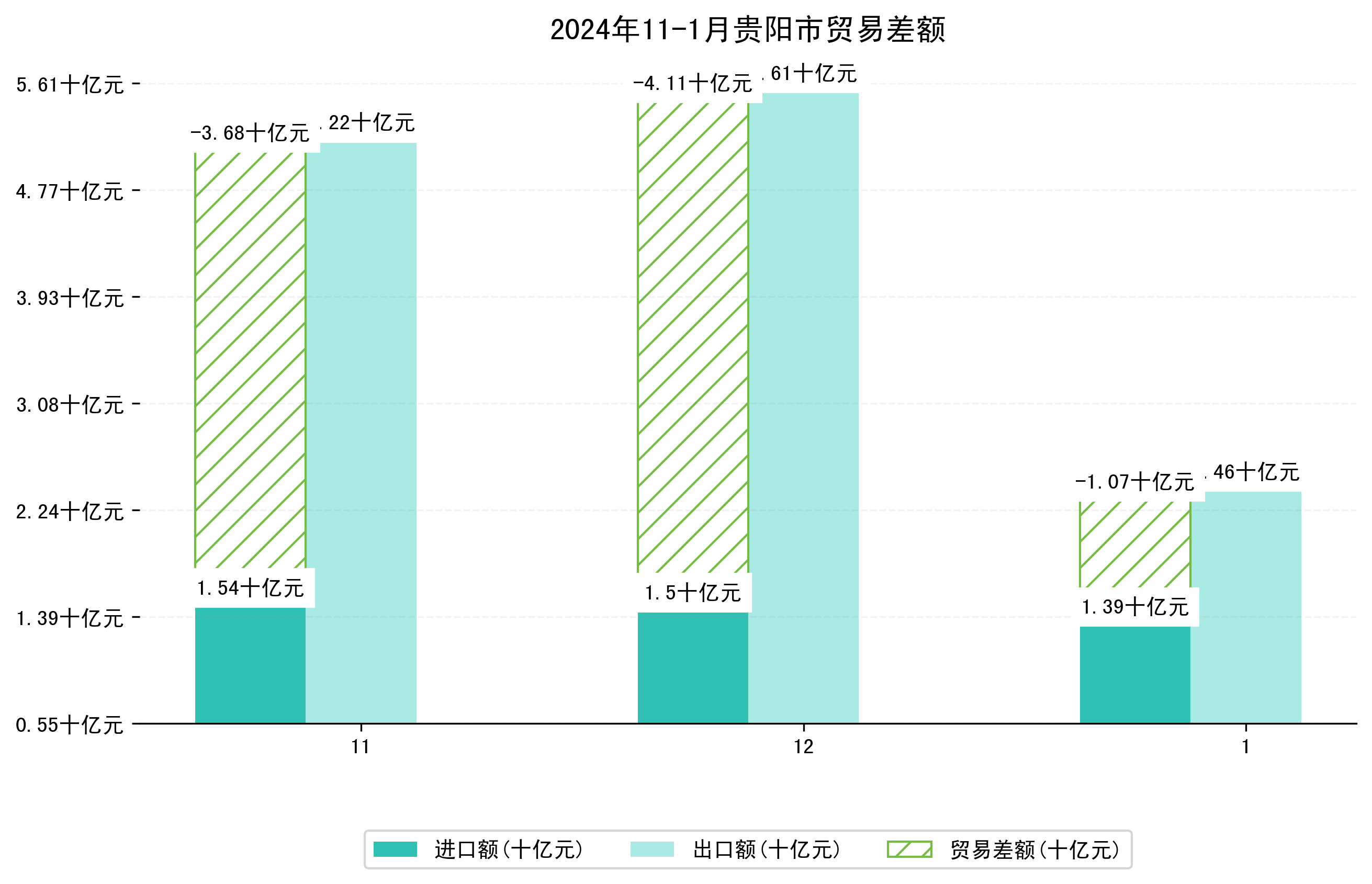 2024年1月贵阳市进出口总额及进出口差额统计分析