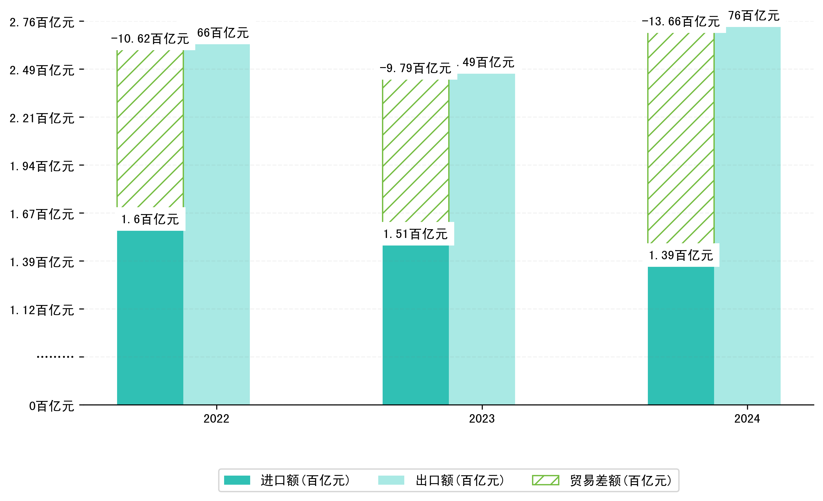 以人民币计,2024年1-11月贵阳市贸易差额为136,6371,4072万元(贸易顺差),相比上年同期增加了38,7573,6455万元,同比增加39.6%。