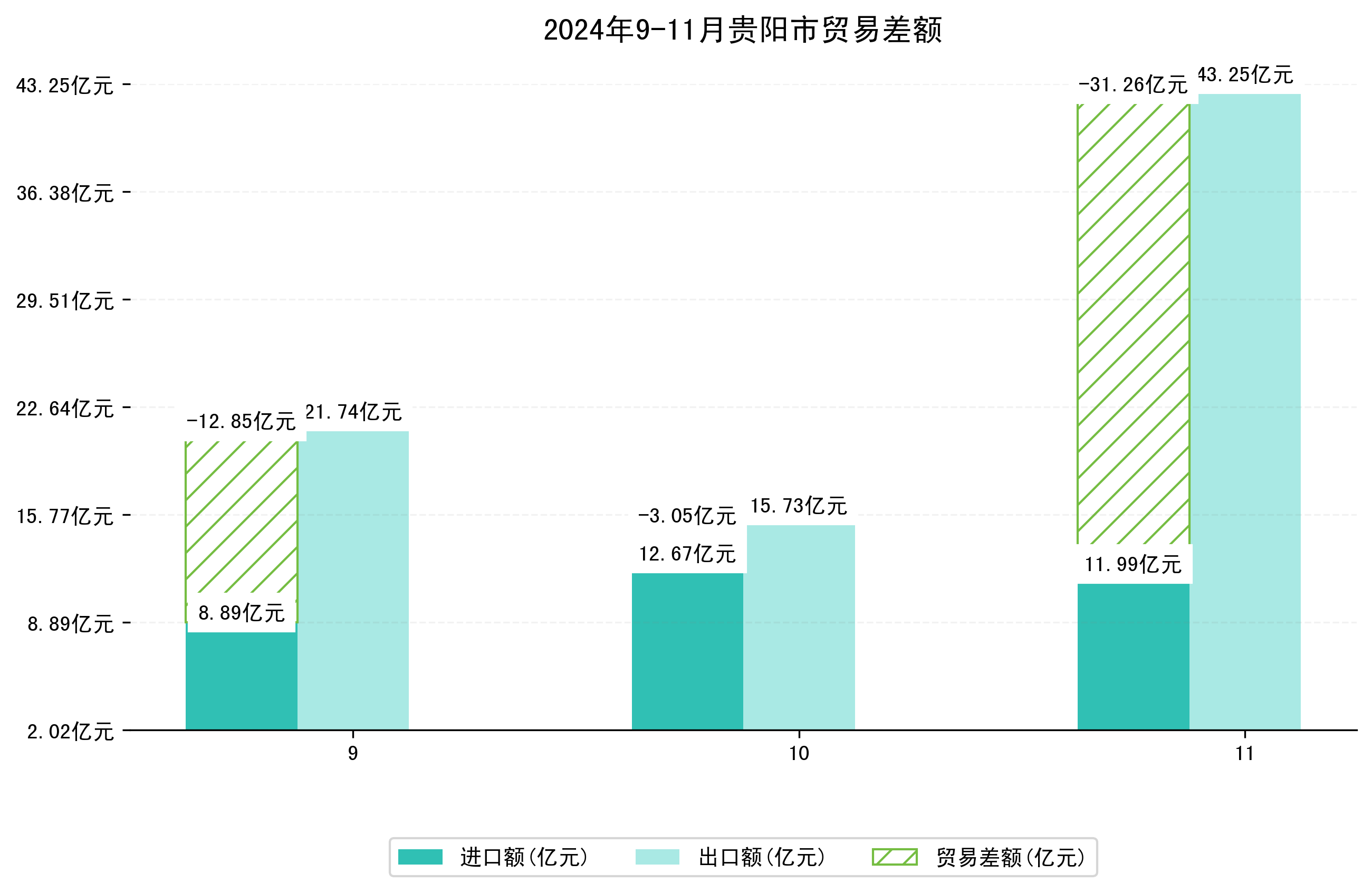 2024年11月贵阳市进出口总额及进出口差额统计分析