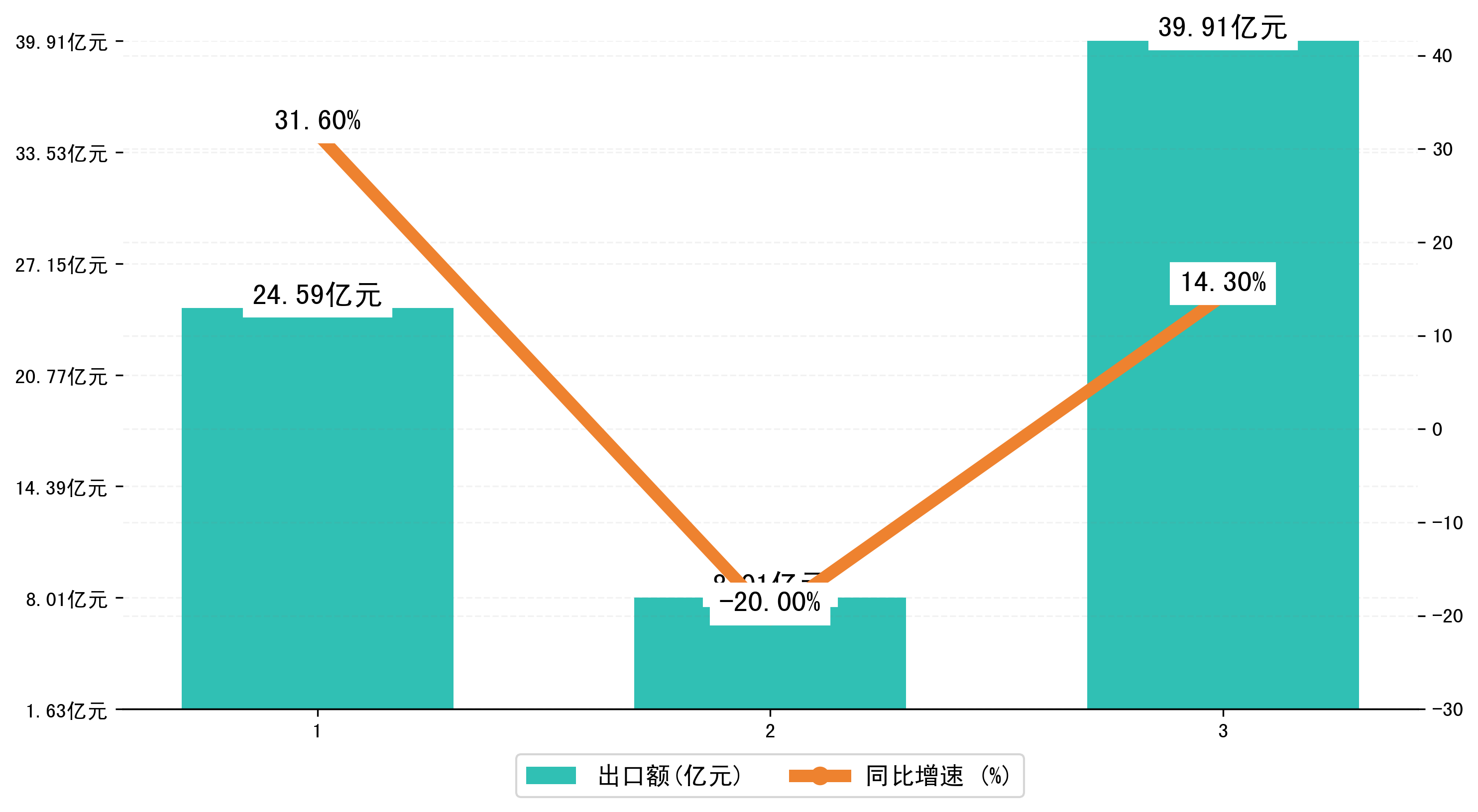 以美元计,2024年3月贵阳市出口额为5,6181.5623万美元,相比上月增加了4,4911.9483万美元;相比上年同期增加了1,7057.5301万美元,同比增加10.20%。