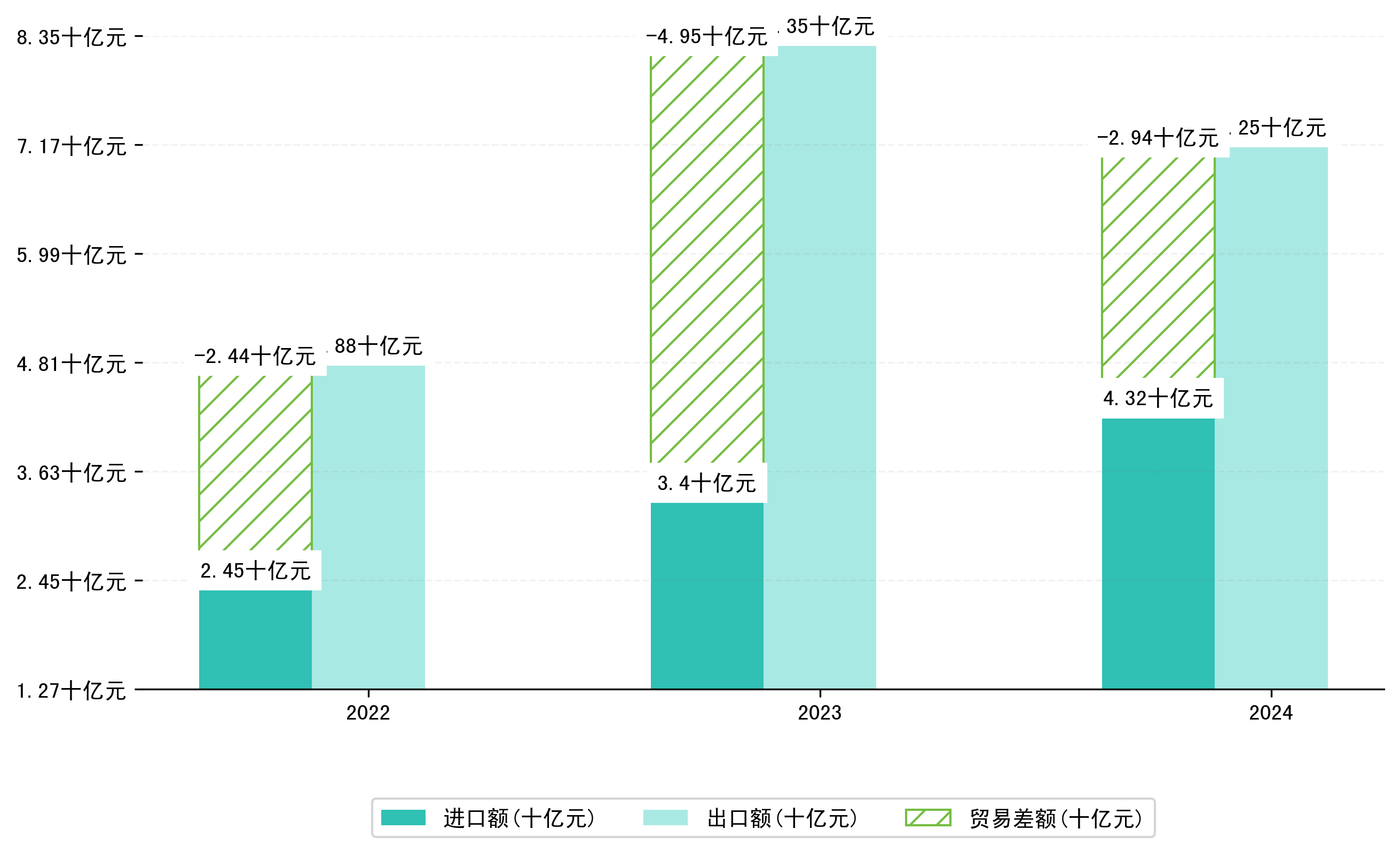 以美元计,2024年3月贵阳市贸易差额为2,9343,2193万美元(贸易顺差),相比上月增加了3,2448,2647万美元;相比上年同期增加了7459,8786万美元,同比增加34.09%。