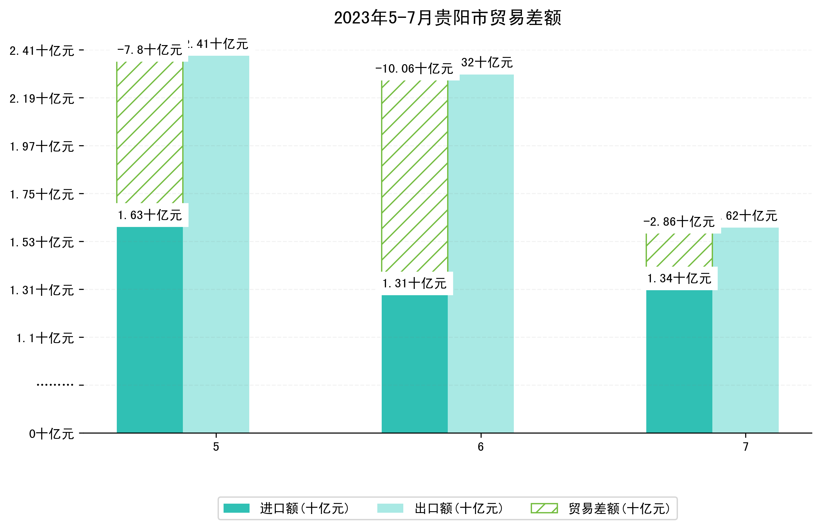 2023年7月贵阳市进出口总额及进出口差额统计分析