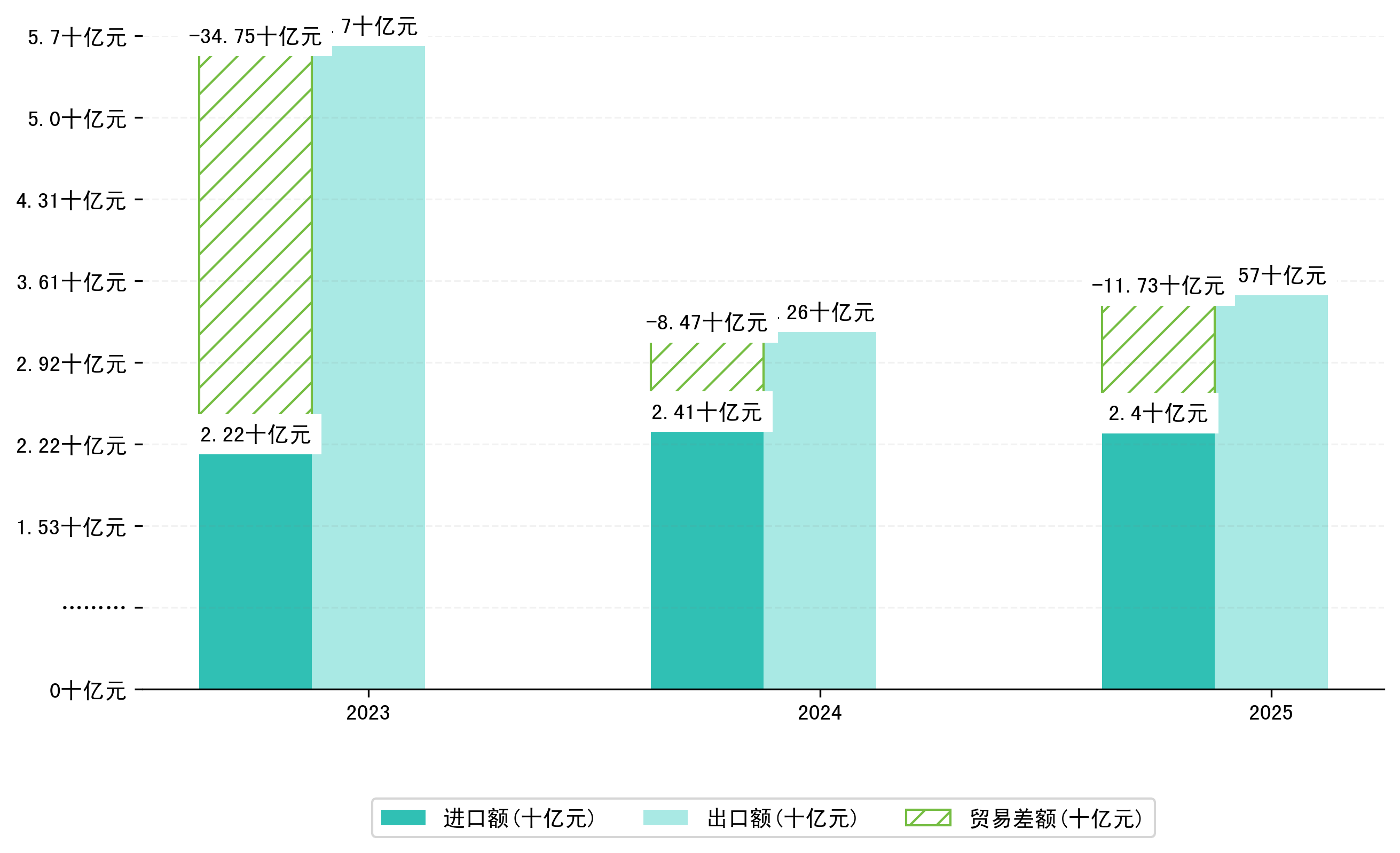 以人民币计,2025年1-2月贵阳市贸易差额为11,7315,6627万元(贸易顺差),相比上年同期增加了3,2620,3660万元,同比增加38.51%。