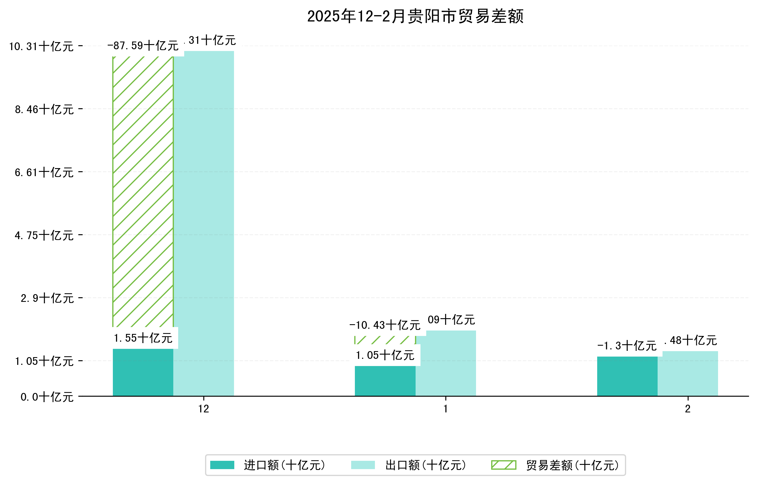 2025年2月贵阳市进出口总额及进出口差额统计分析