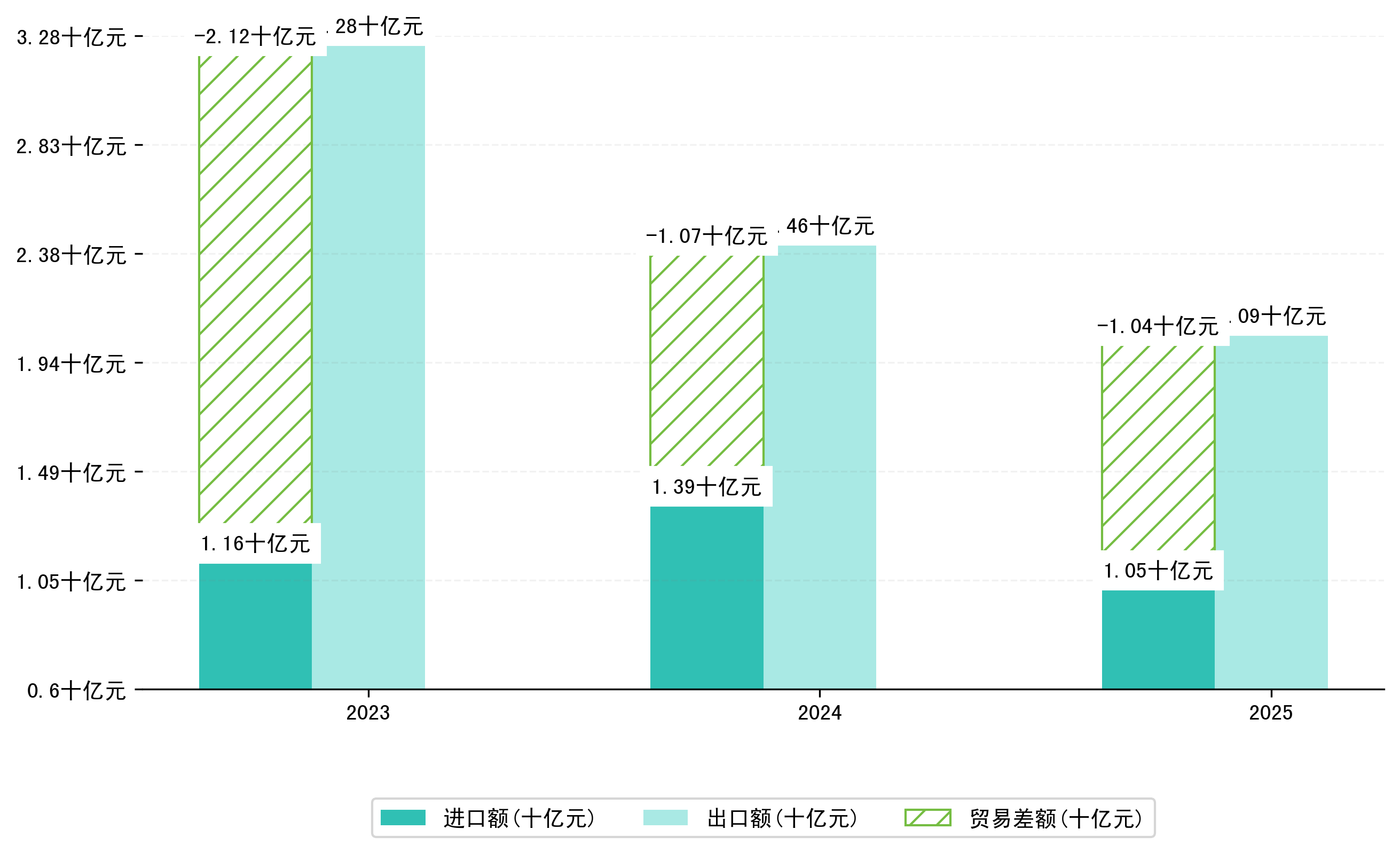 以人民币计,2025年1月贵阳市贸易差额为10,4313,6108万元(贸易顺差),相比上月减少了77,1606,9068万元,即10,7504,0824万美元;相比上年同期减少了2537,0371万元,同比减少-2.37%。