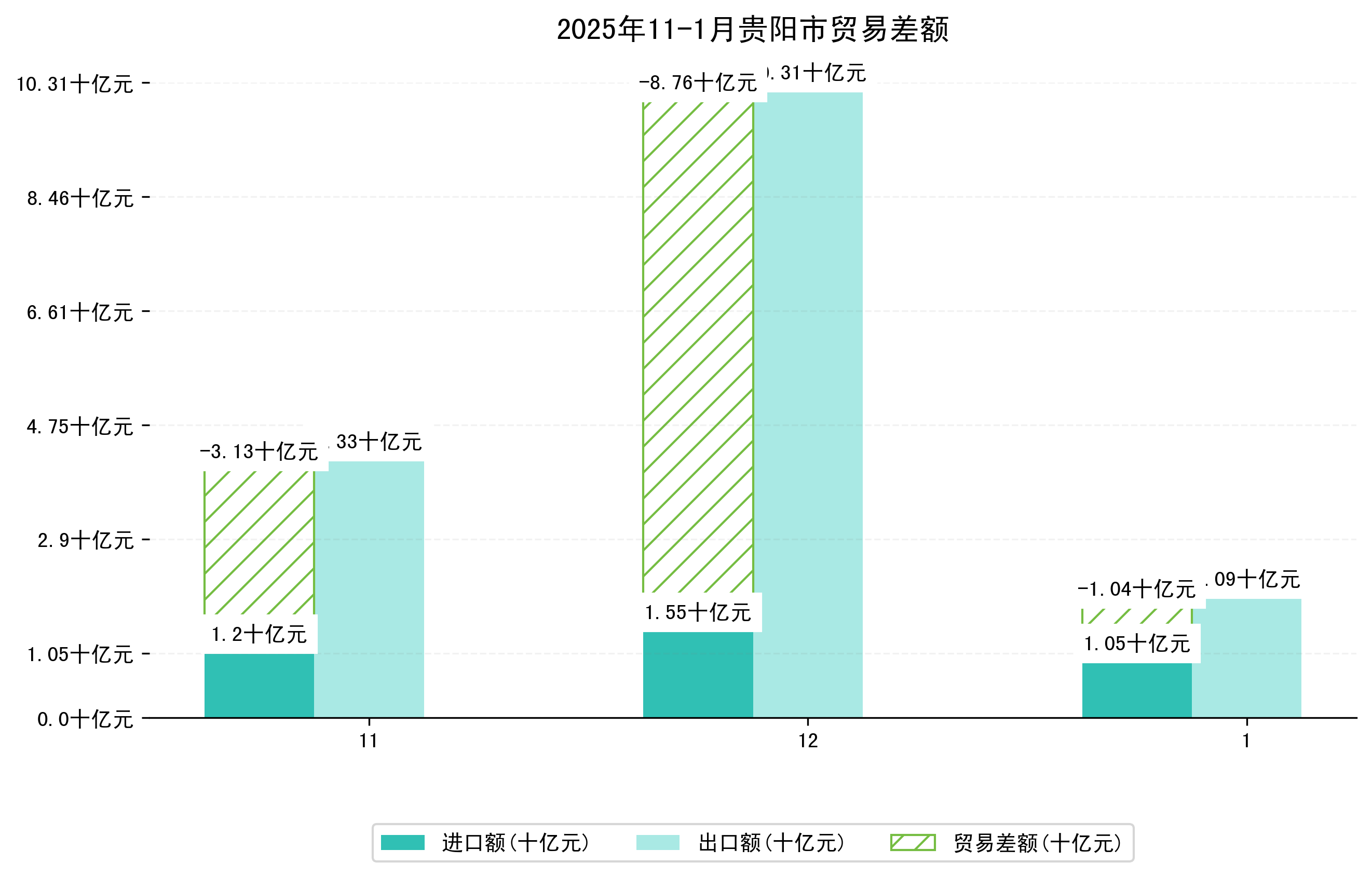 2025年1月贵阳市进出口总额及进出口差额统计分析