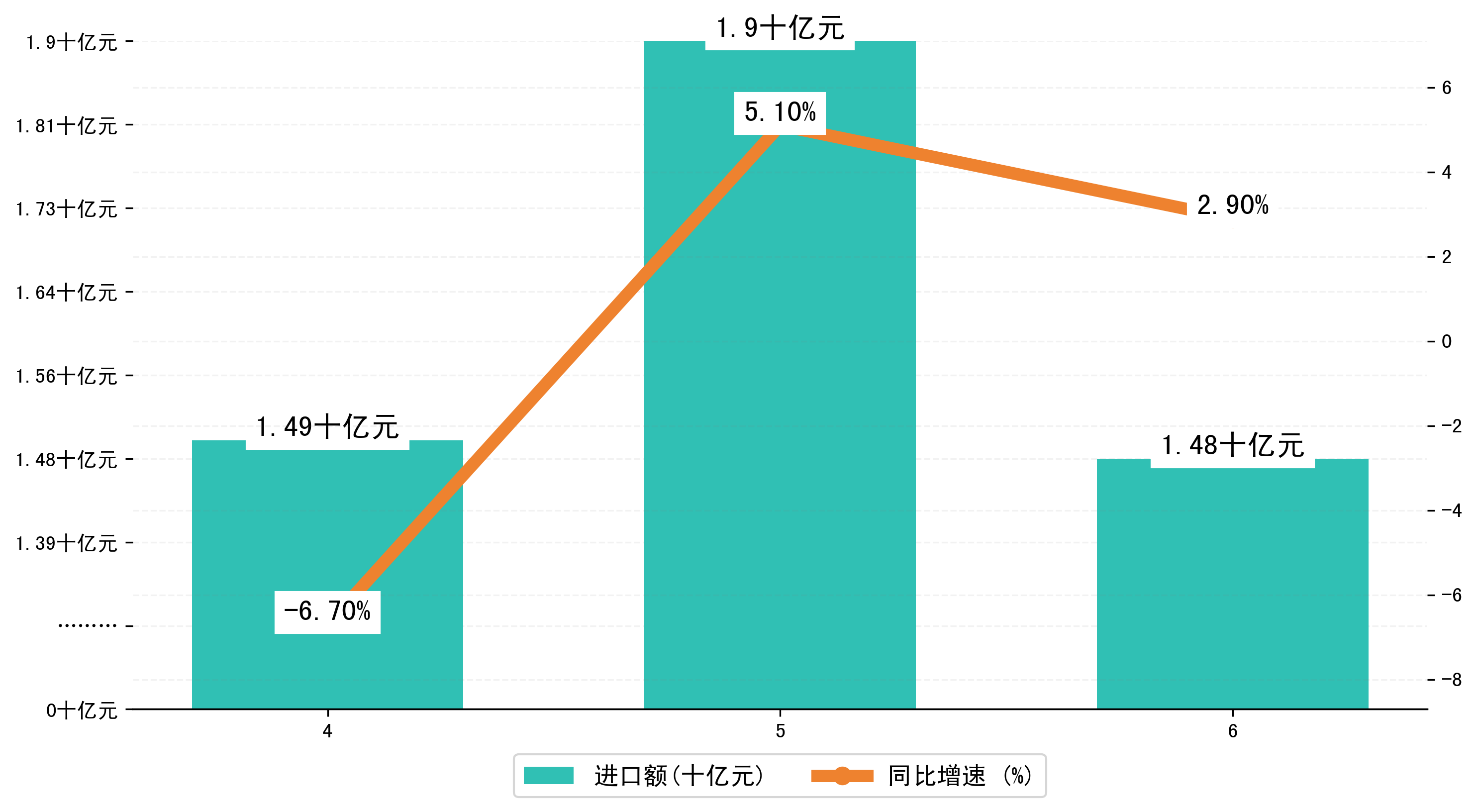 以人民币计,2025年6月贵阳市进口额为14,7630.4134万元,相比上月减少了4,2149.7665万元;相比上年同期减少了2,1261.2271万元,同比增加了2.90%。