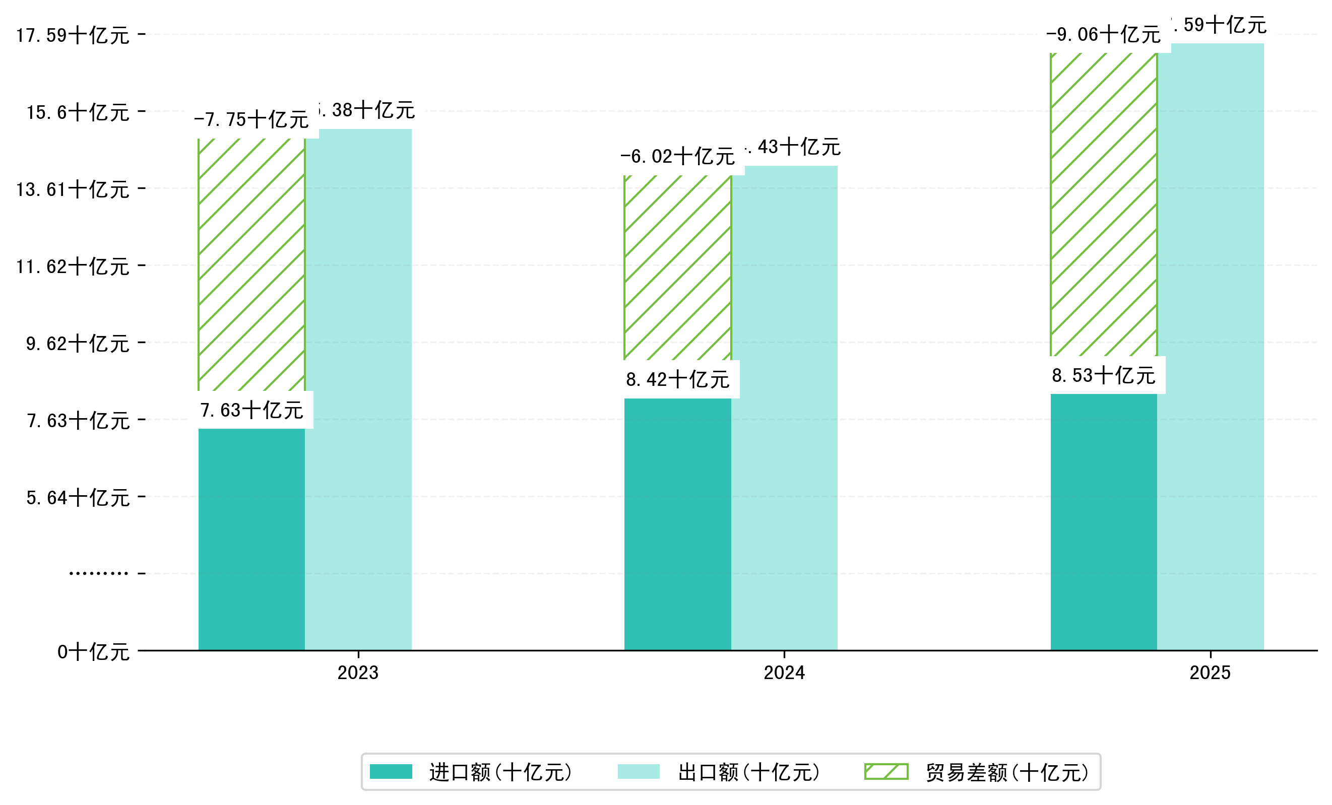 以美元计,2025年1-6月贵阳市贸易差额为12,6064,0619万美元(贸易顺差),相比上年同期增加了4,1549,8015万美元,同比增加49.16%。