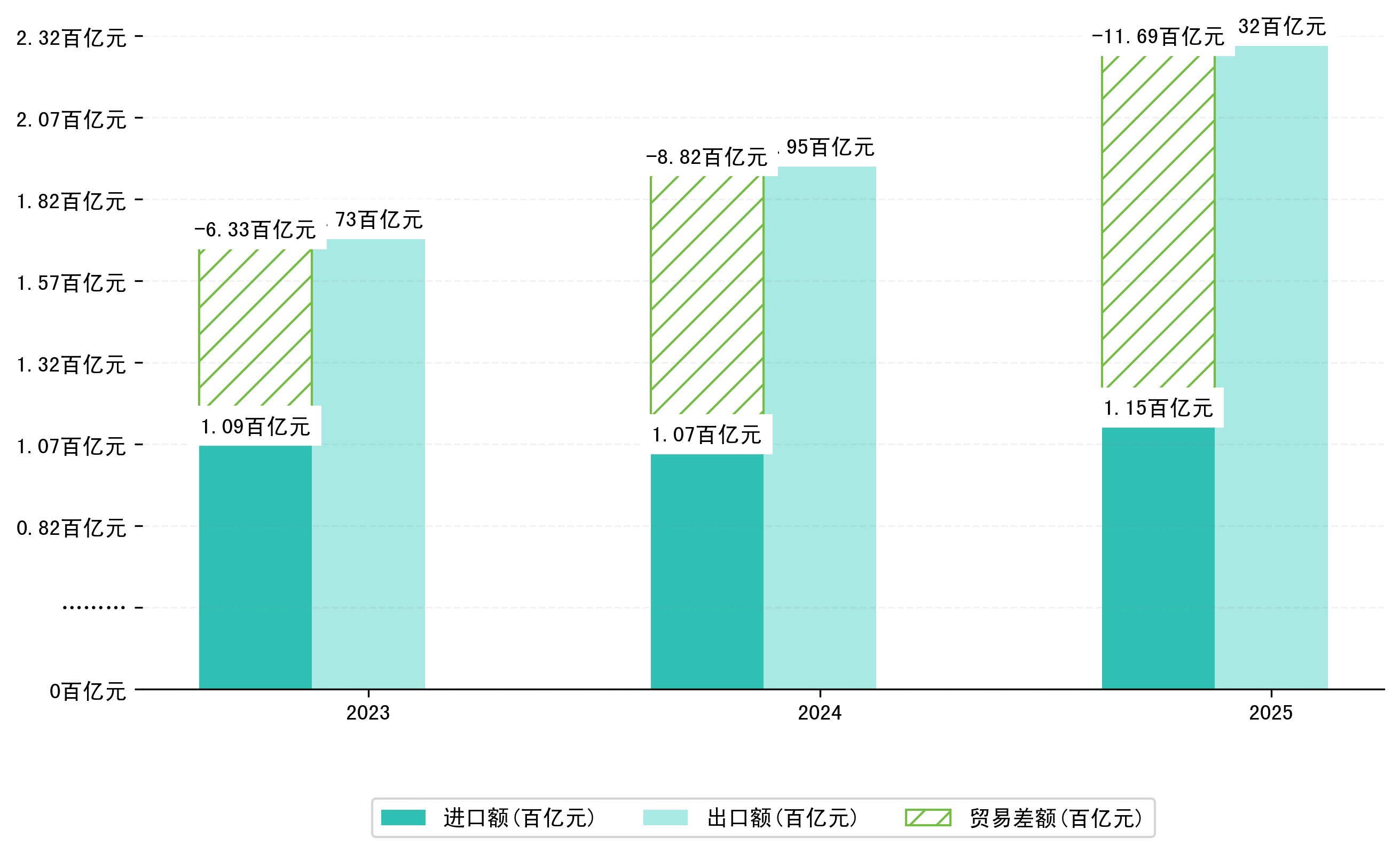 以人民币计,2025年1-8月贵阳市贸易差额为116,8594,0092万元(贸易顺差),相比上年同期增加了28,6264,9610万元,同比增加32.44%。