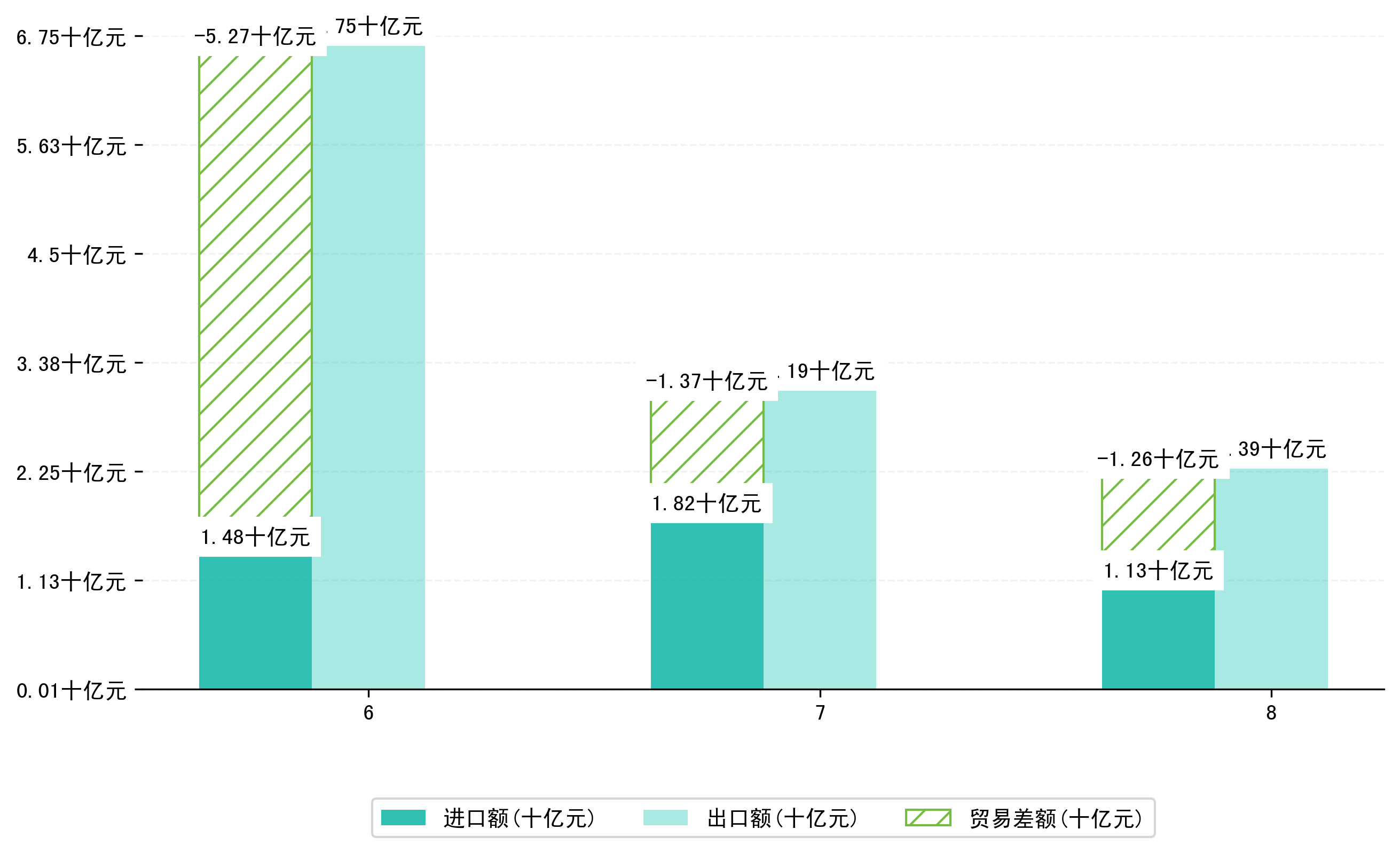以人民币计,2025年8月贵阳市贸易差额为12,5727,4023万元(贸易顺差),相比上月减少了1,1074,9733万元,即1507,1474万美元;相比上年同期减少了1,0464,1235万元,同比减少-7.68%。