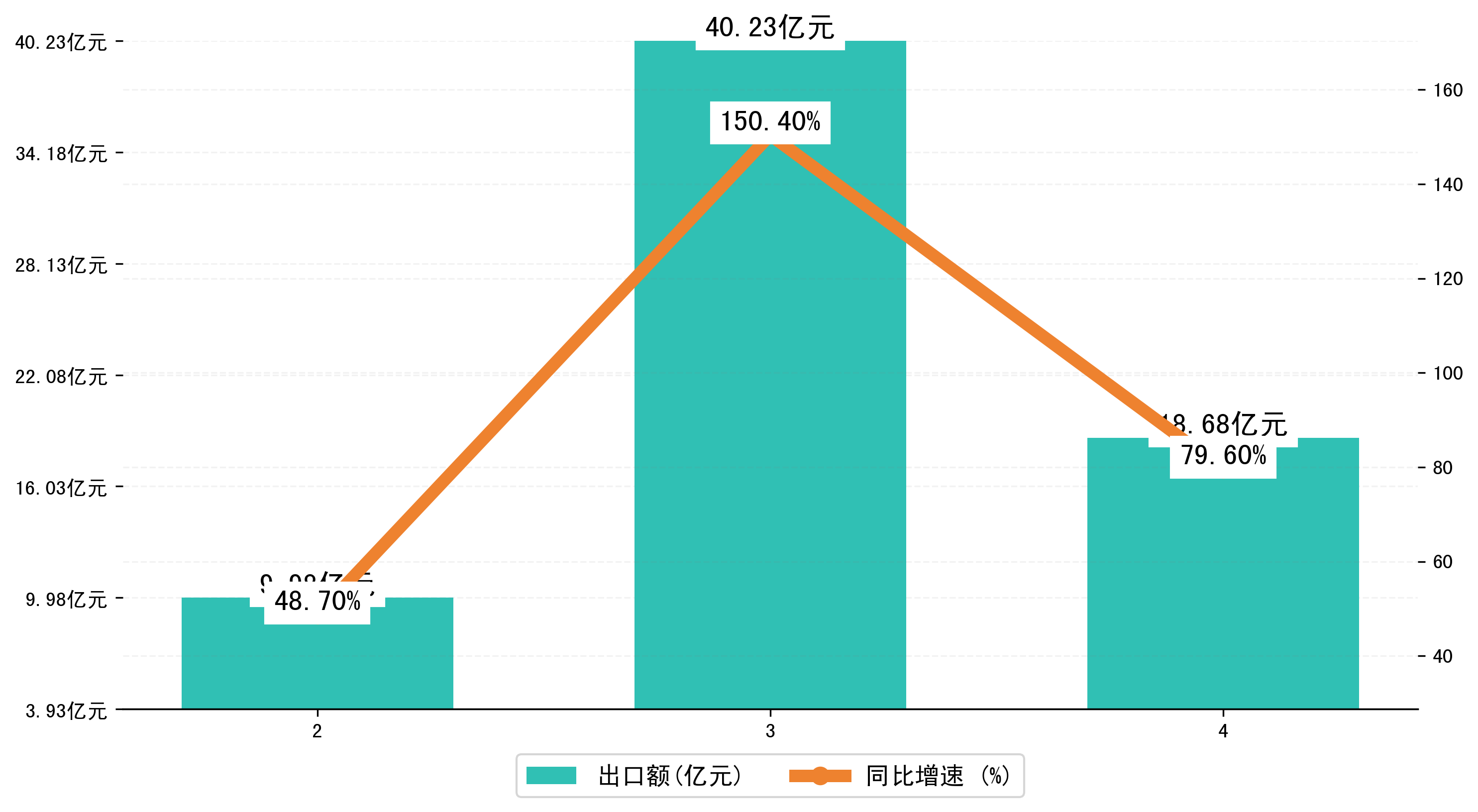 以美元计,2024年1-4月哈尔滨市出口额为11,8699.6666万美元,相比上年同期增加了5,0442.4045万美元,同比增加73.80%。