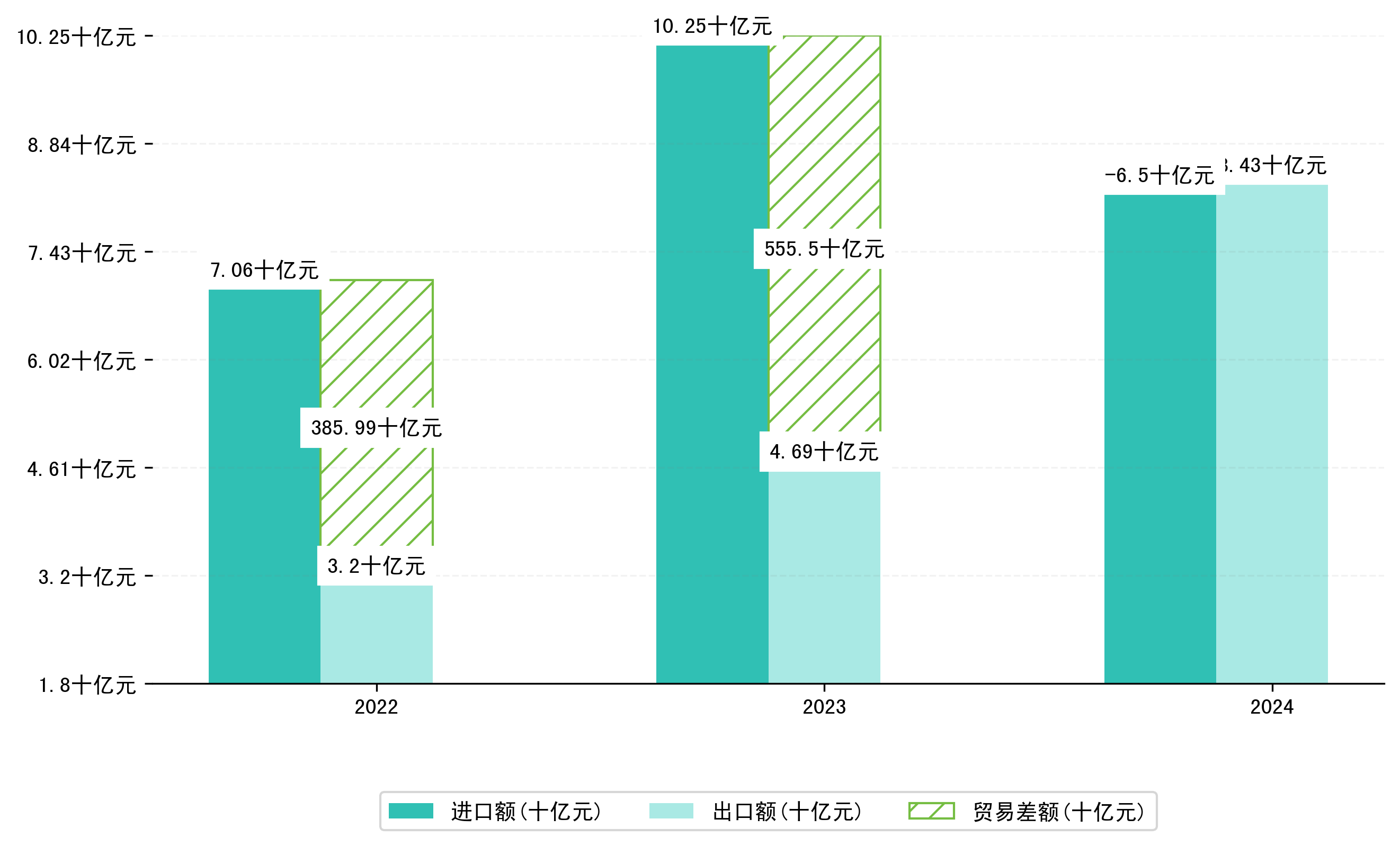 以美元计,2024年4月哈尔滨市贸易差额为3214,0470万美元(贸易顺差),相比上月减少了1,6960,9699万美元;相比上年同期减少了347,0221万美元,同比减少-9.74%。