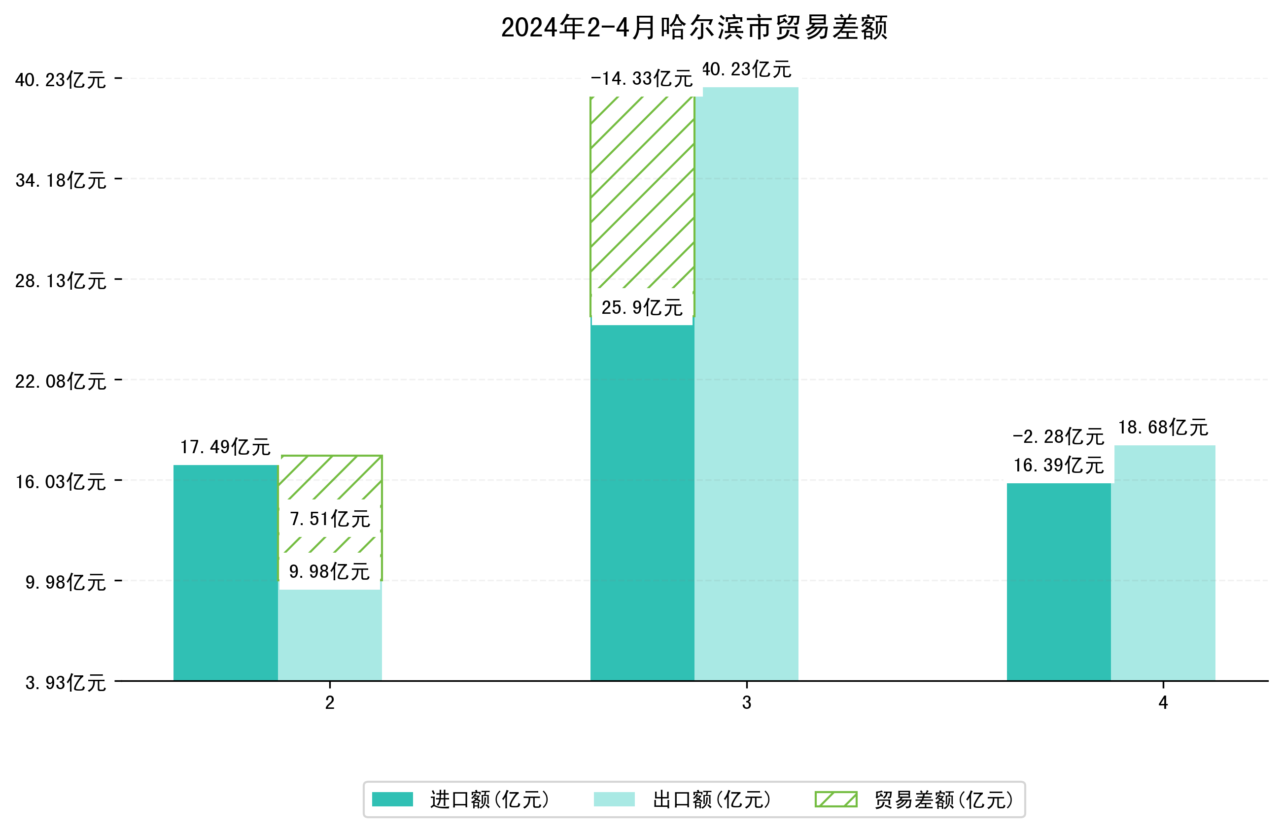 (图四:2024年2-4月哈尔滨市贸易差额)