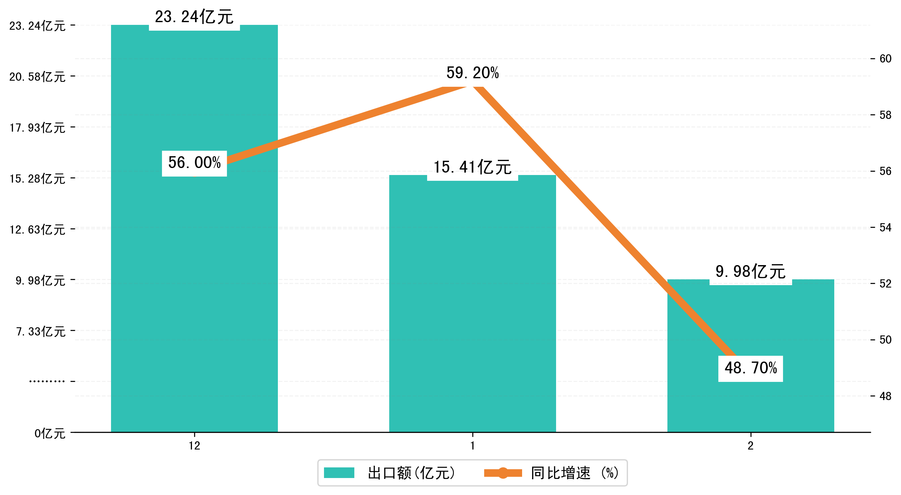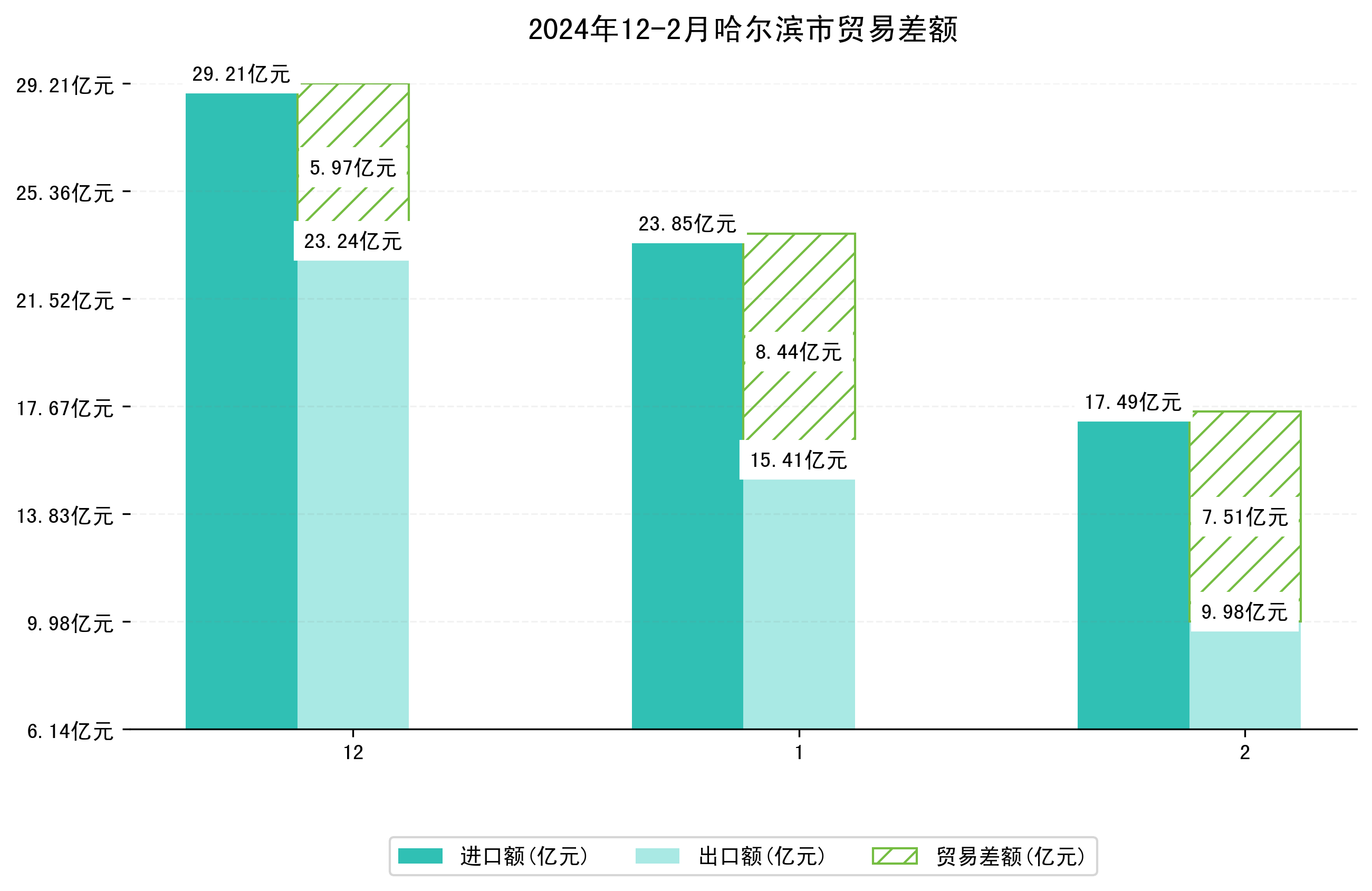 (图一:2024年12-2月哈尔滨市进出口总额)