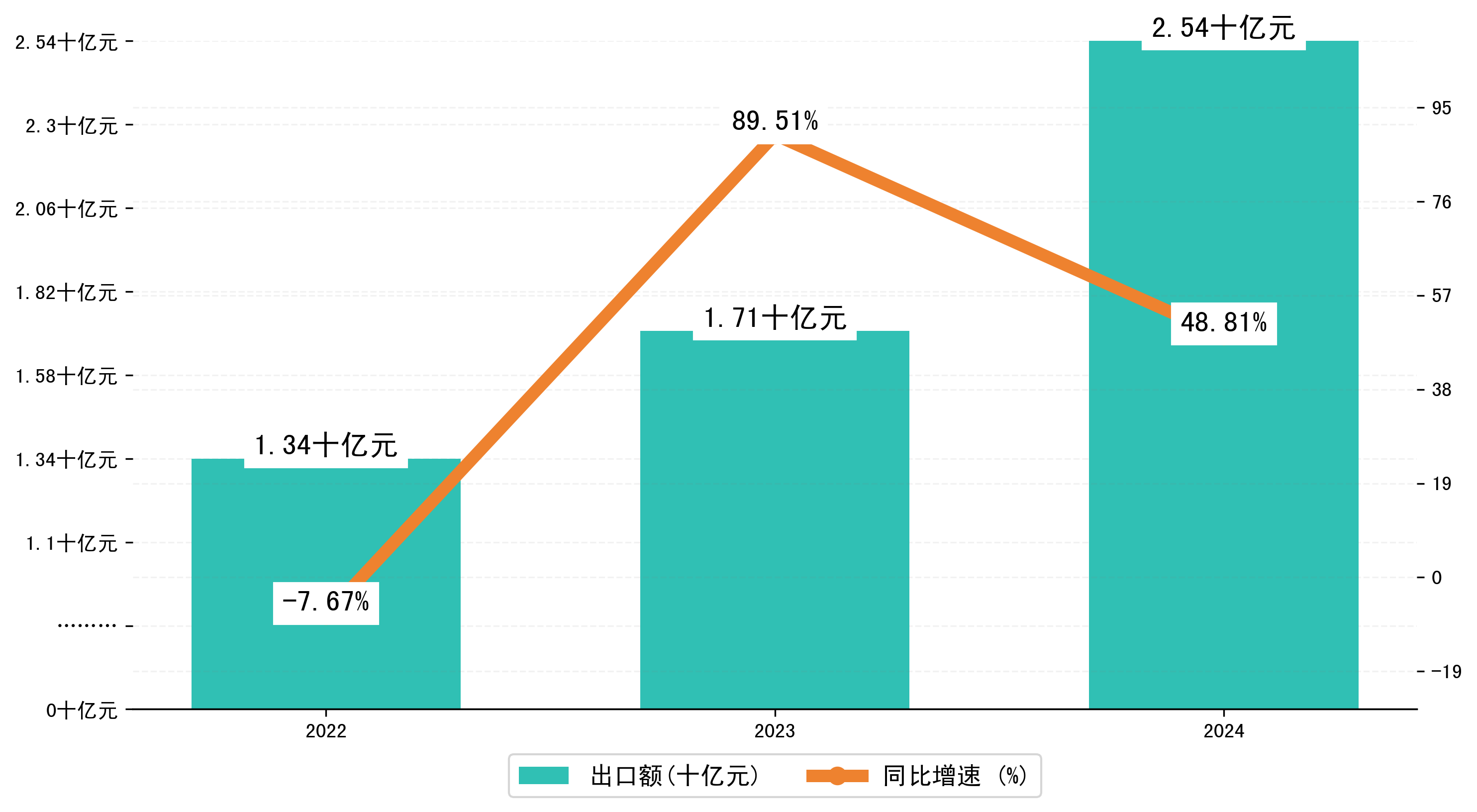 以人民币计,2024年1-2月哈尔滨市出口额为25,3978.9011万元,相比上年同期增加了8,3309.8039万元,同比增加了48.70%。