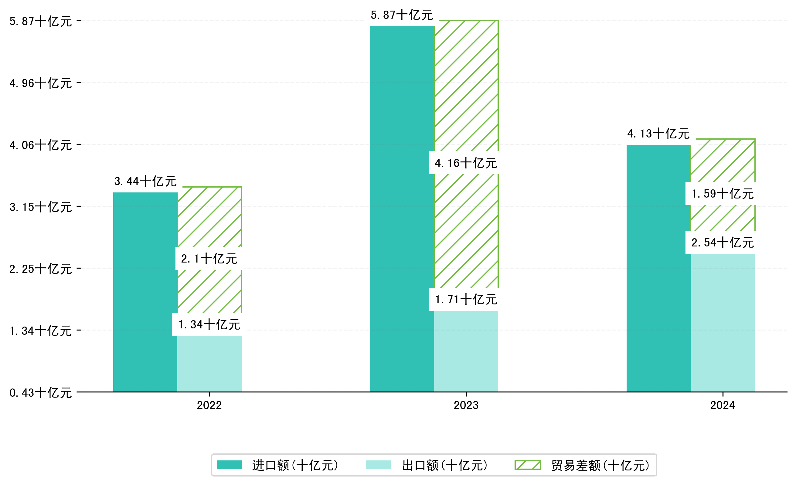 以人民币计,2024年2月哈尔滨市贸易差额为7,5078,8148万元(贸易逆差),相比上月增加了9318,8166万元,即1335,2622万美元;相比上年同期增加了15,5605,8101万元,同比增加-67.45%。