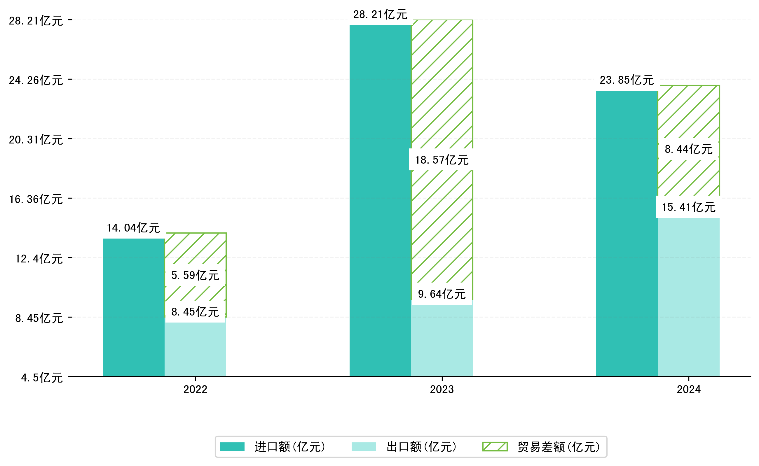 以美元计,2024年1月哈尔滨市贸易差额为1,1904,0902万美元(贸易逆差),相比上月减少了3571,0131万美元;相比上年同期增加了1,4370,5725万美元,同比增加-54.69%。
