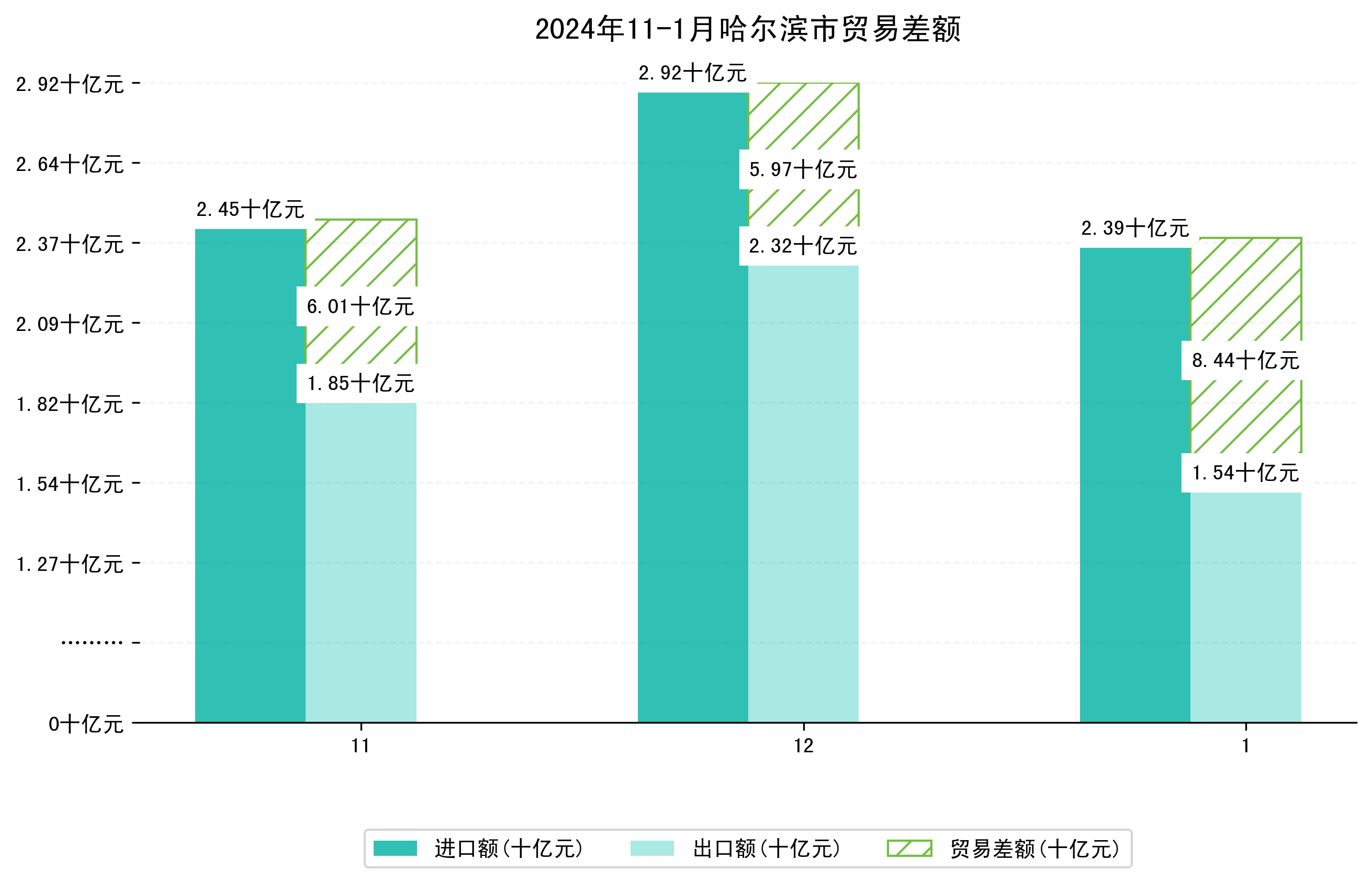 (图四:2024年11-1月哈尔滨市贸易差额)