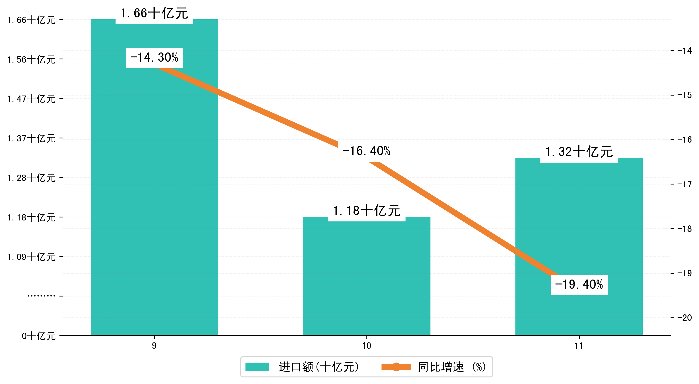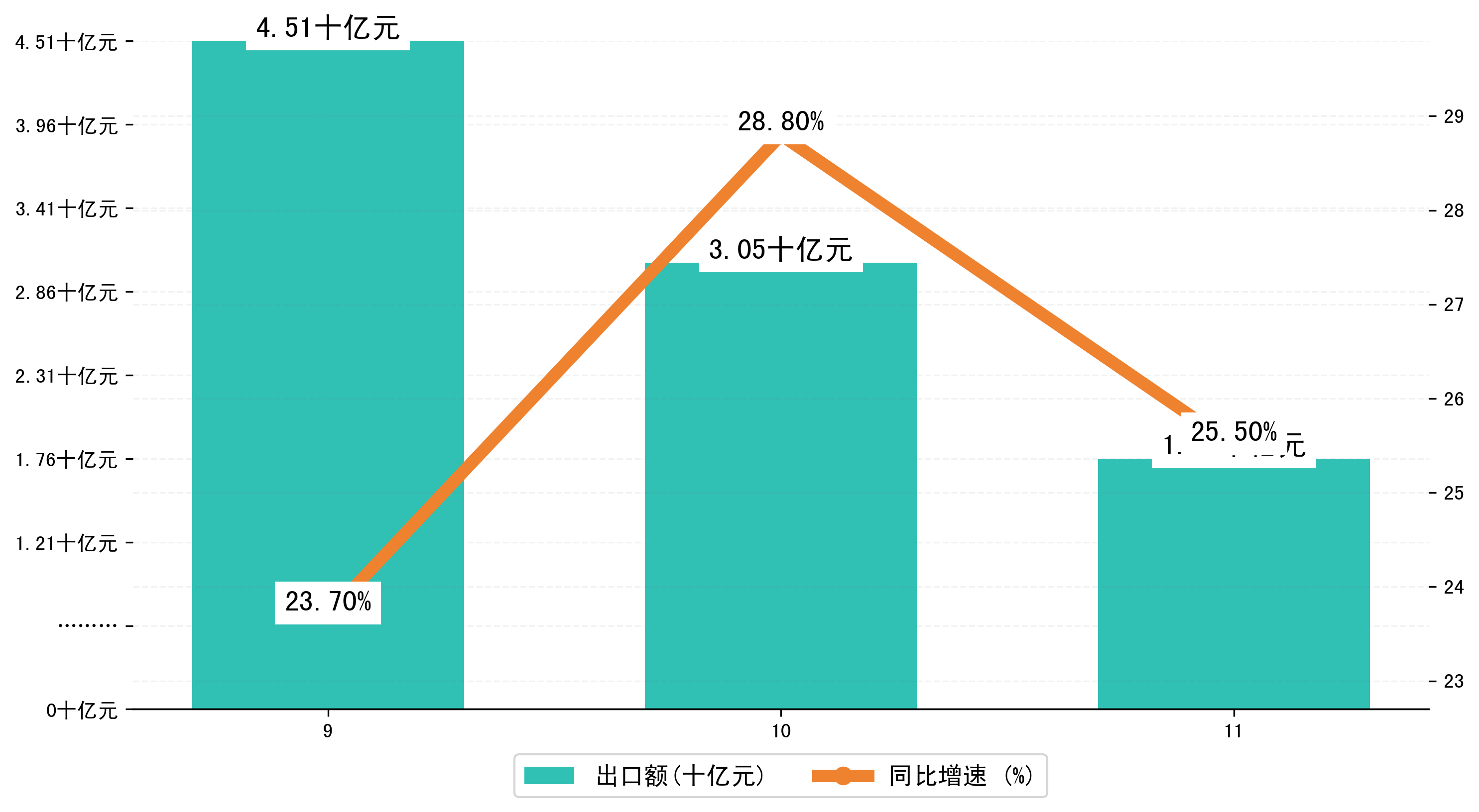 (图一:2024年9-11月哈尔滨市进出口总额)