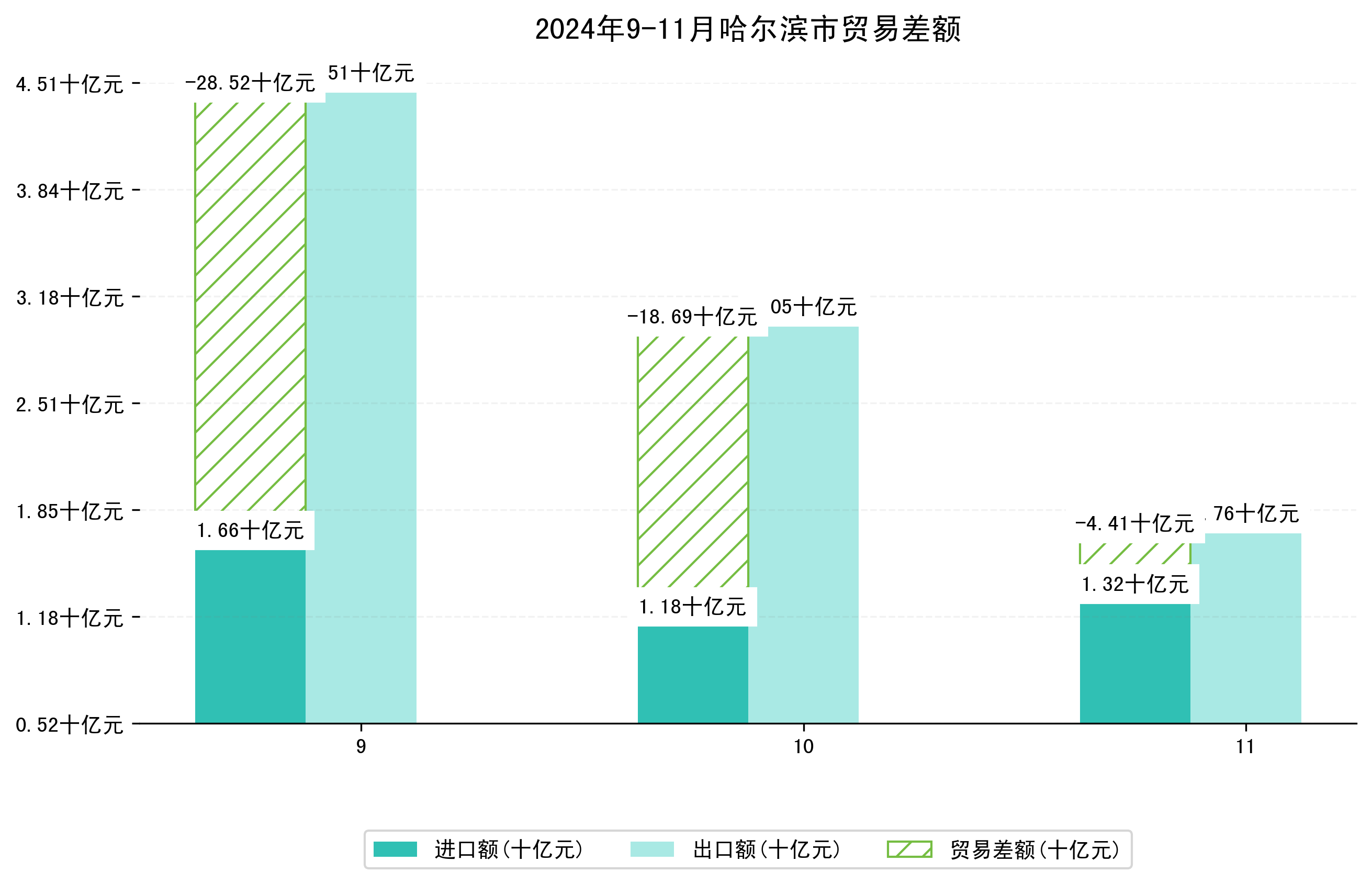 (图四:2024年9-11月哈尔滨市贸易差额)