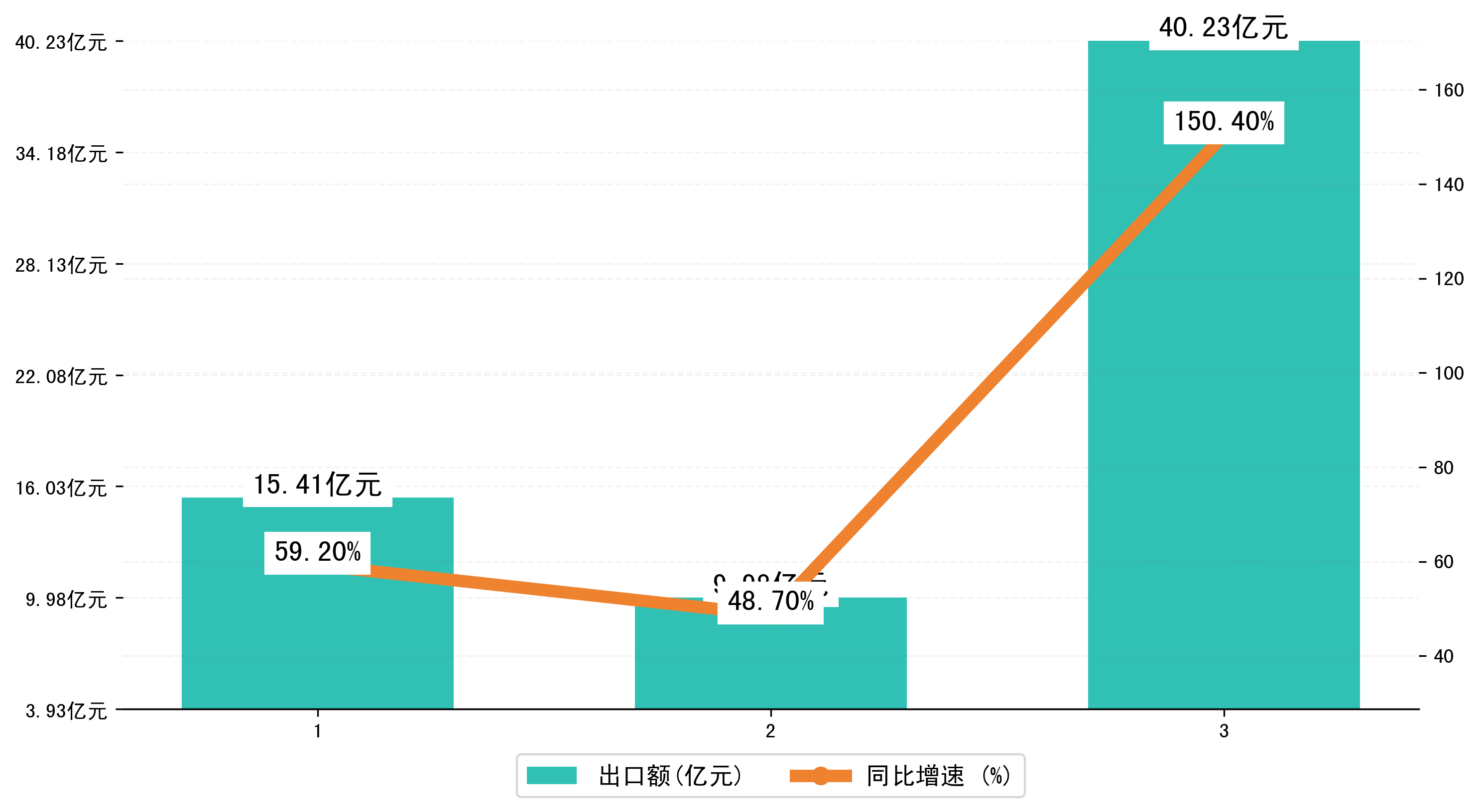 以人民币计,2024年3月哈尔滨市出口额为40,2337.5802万元,相比上月增加了30,2500.5195万元;相比上年同期增加了31,1016.718万元,同比增加了150.40%。