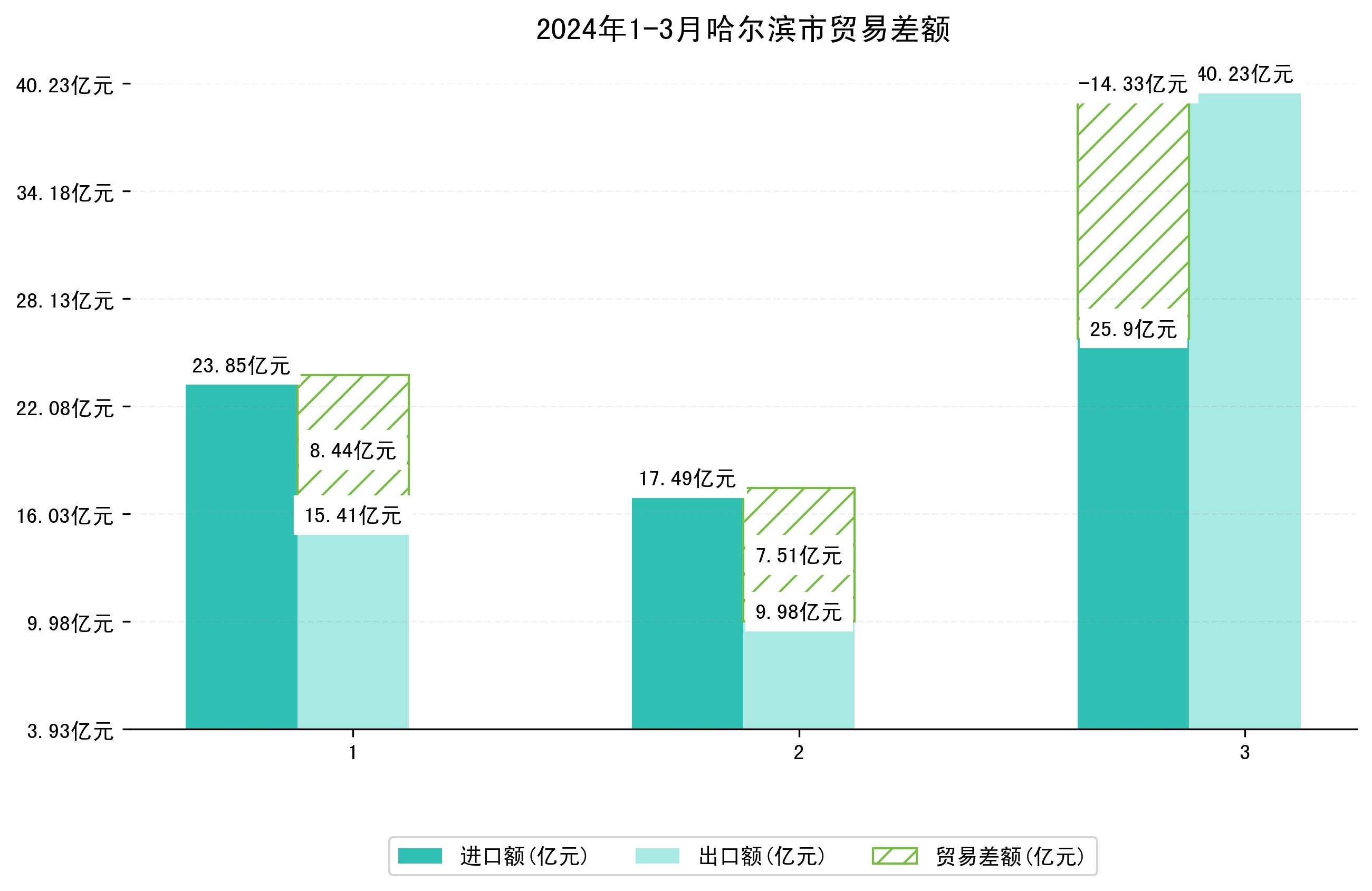 (图四:2024年1-3月哈尔滨市贸易差额)