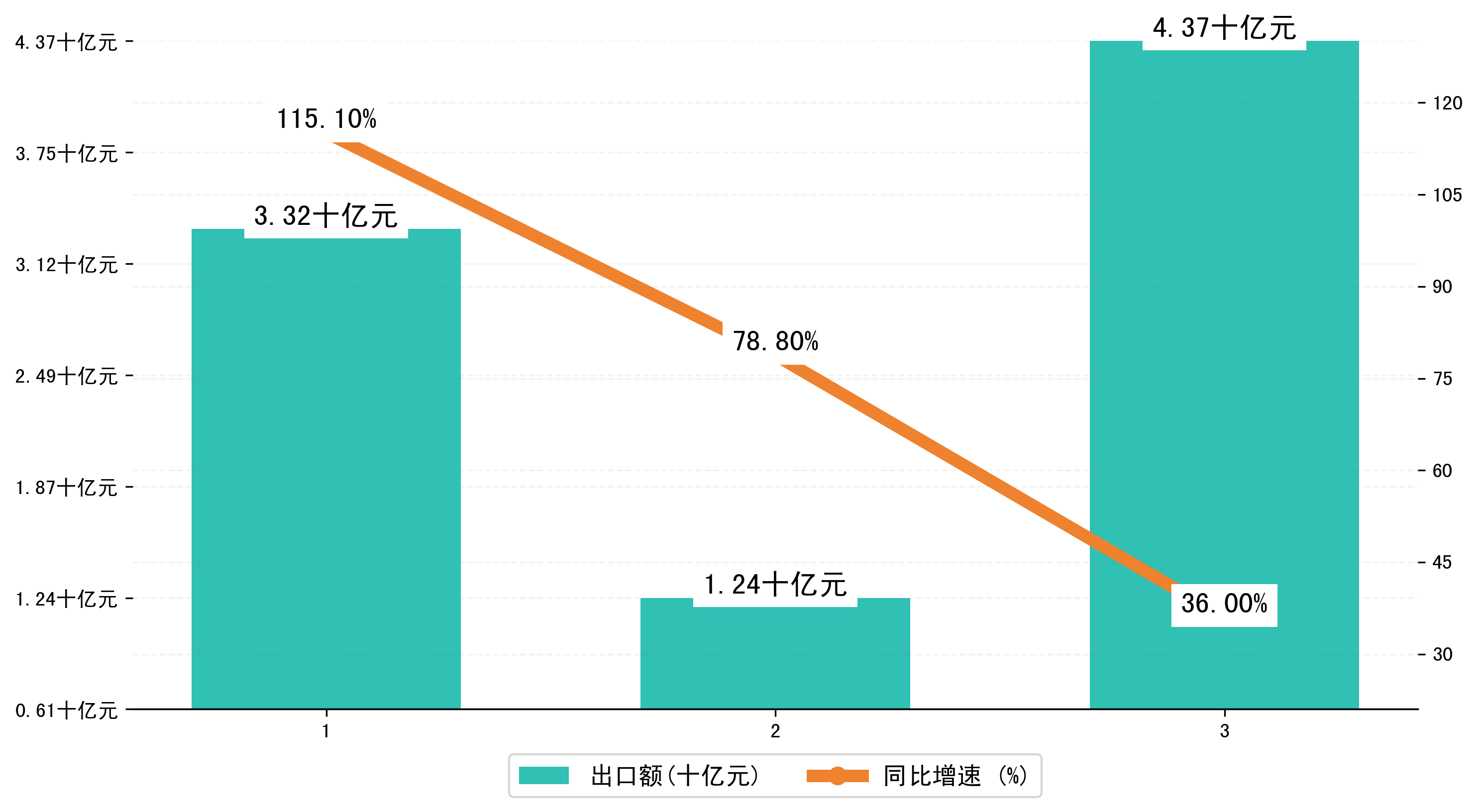 以美元计,2025年1-3月哈尔滨市出口额为12,4385.1857万美元,相比上年同期增加了3,1987.187万美元,同比增加34.50%。