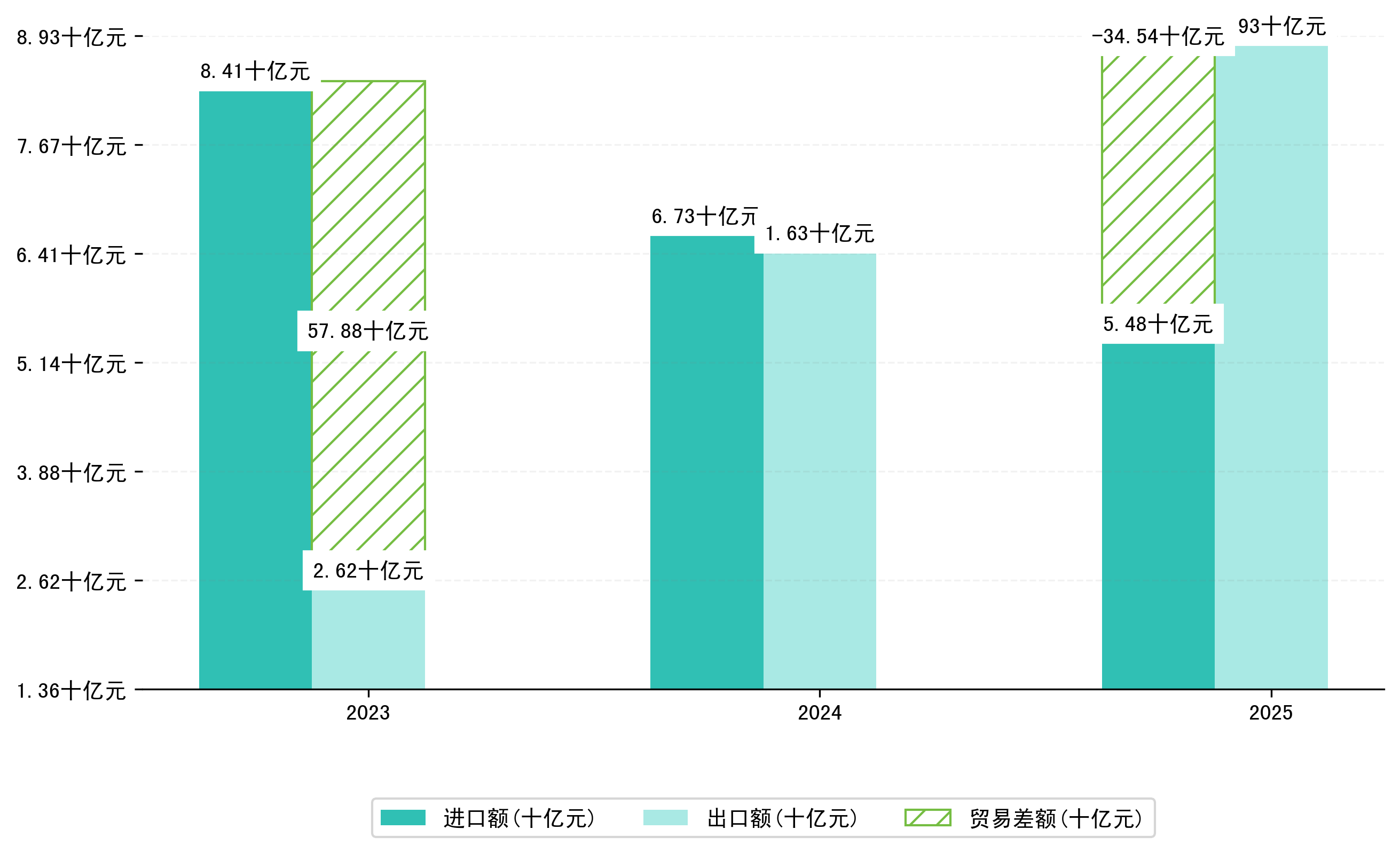 以美元计,2025年1-3月哈尔滨市贸易差额为4,8102,0274万美元(贸易顺差),相比上年同期增加了5,0420,3883万美元,同比增加-2174.83%。