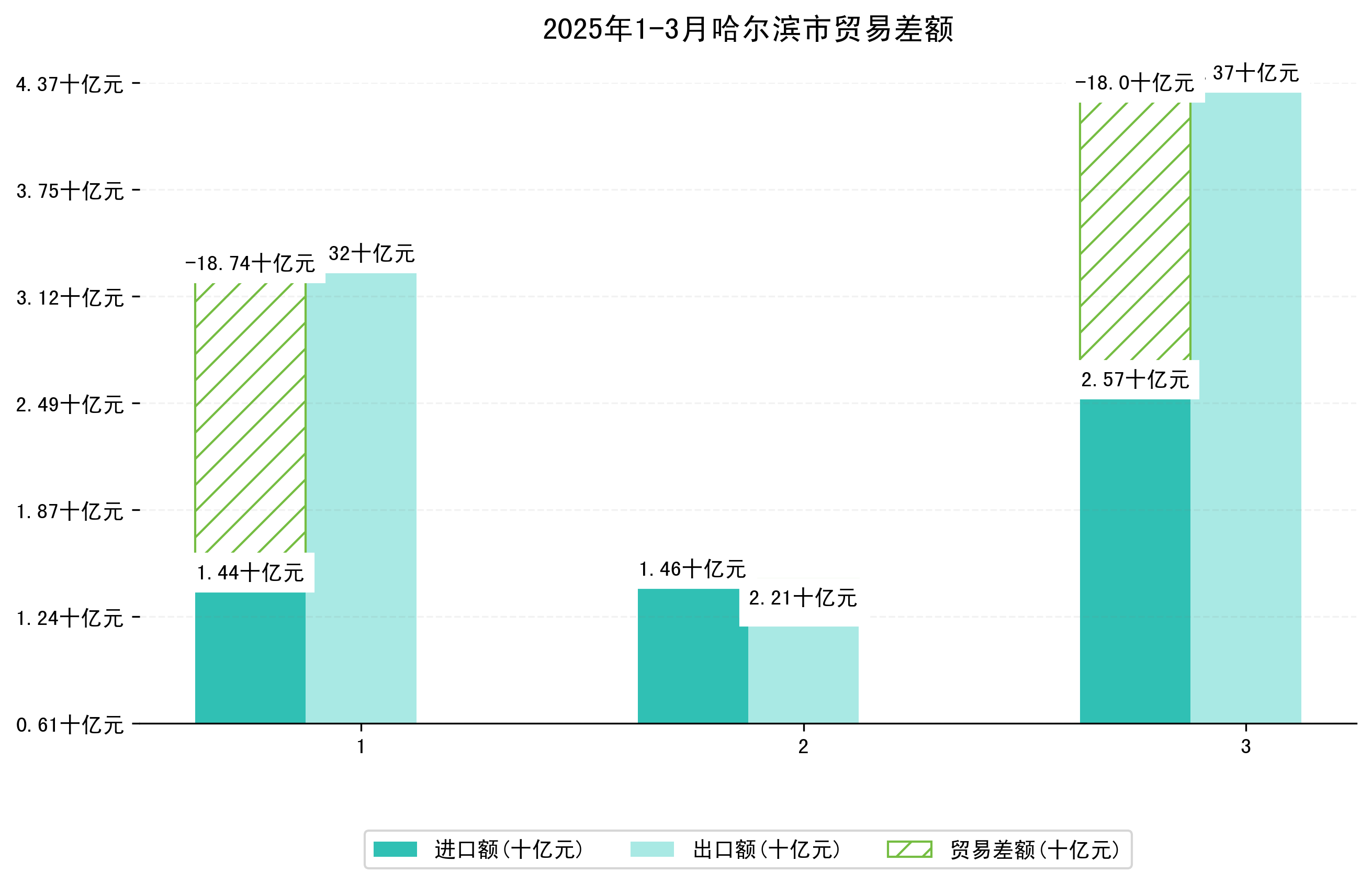(图四:2025年1-3月哈尔滨市贸易差额)