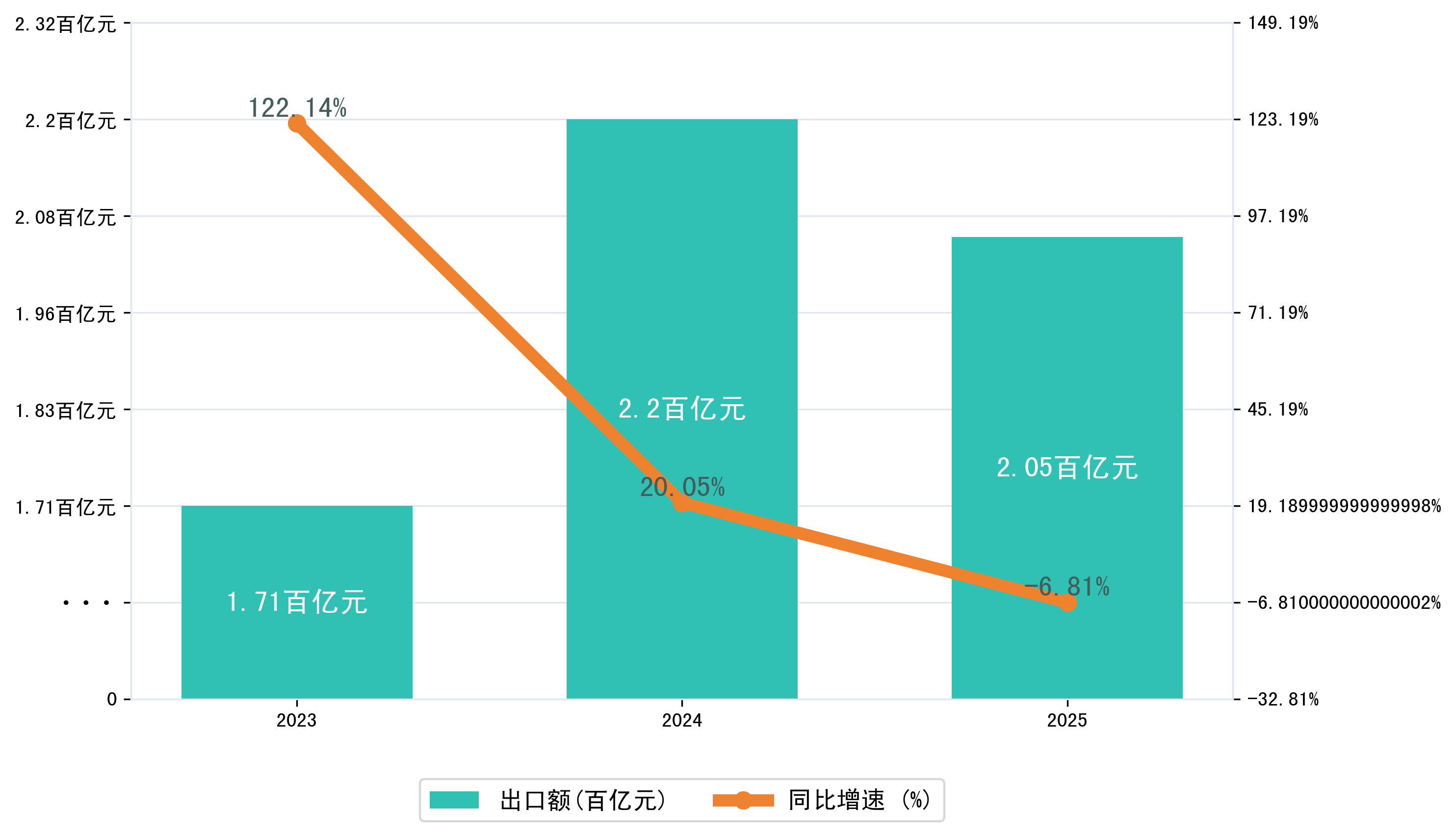 以人民币计,2025年1-10月哈尔滨市出口额为205,2028.3301万元,相比上年同期减少了14,9838.401万元,同比减少了-6.80%。