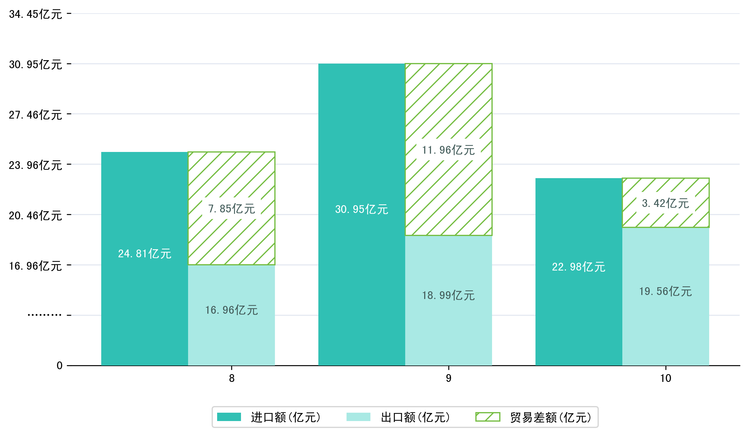 (图一:2025年8-10月哈尔滨市进出口总额)