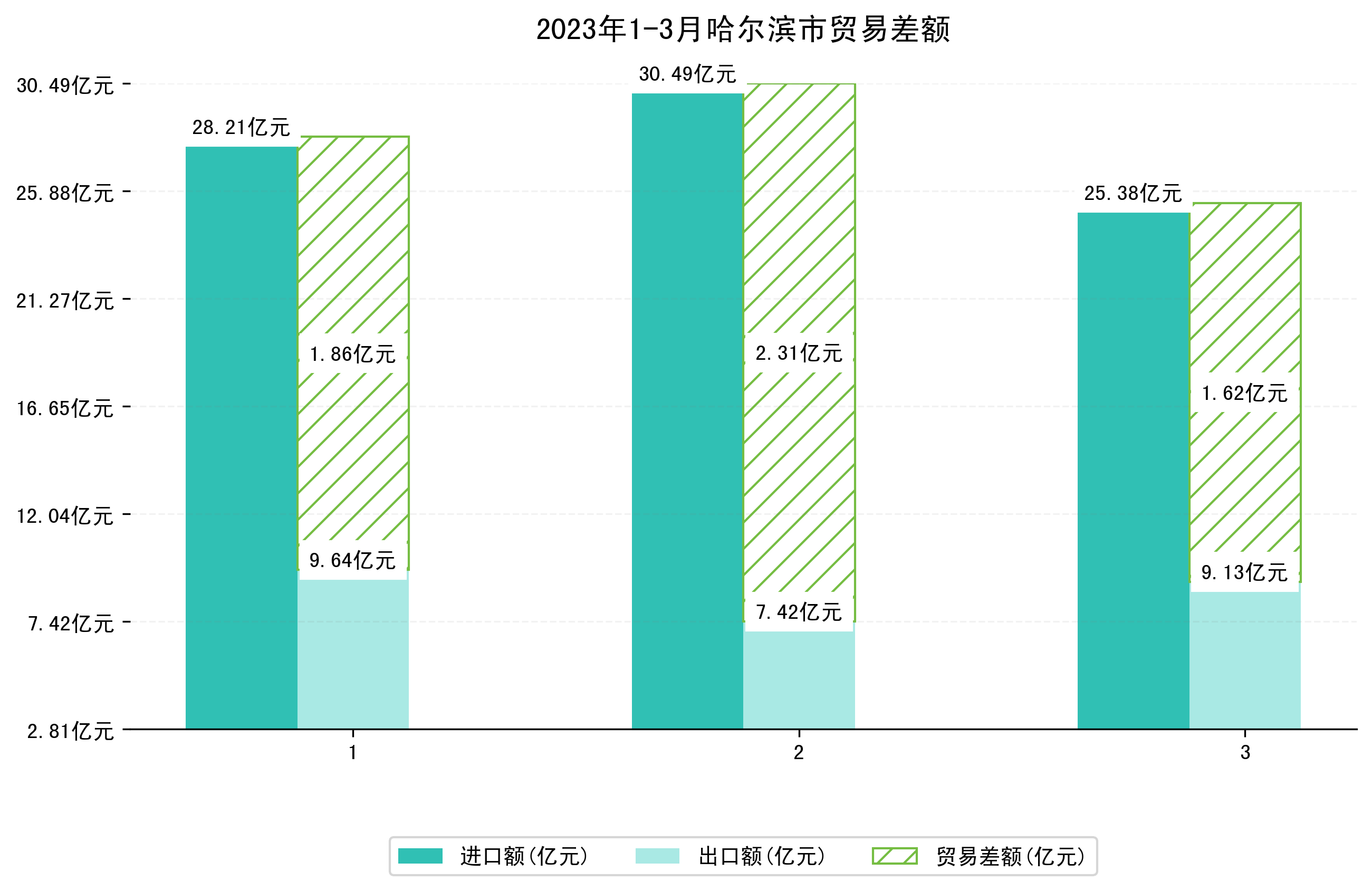 (图一:2023年1-3月哈尔滨市进出口总额)
