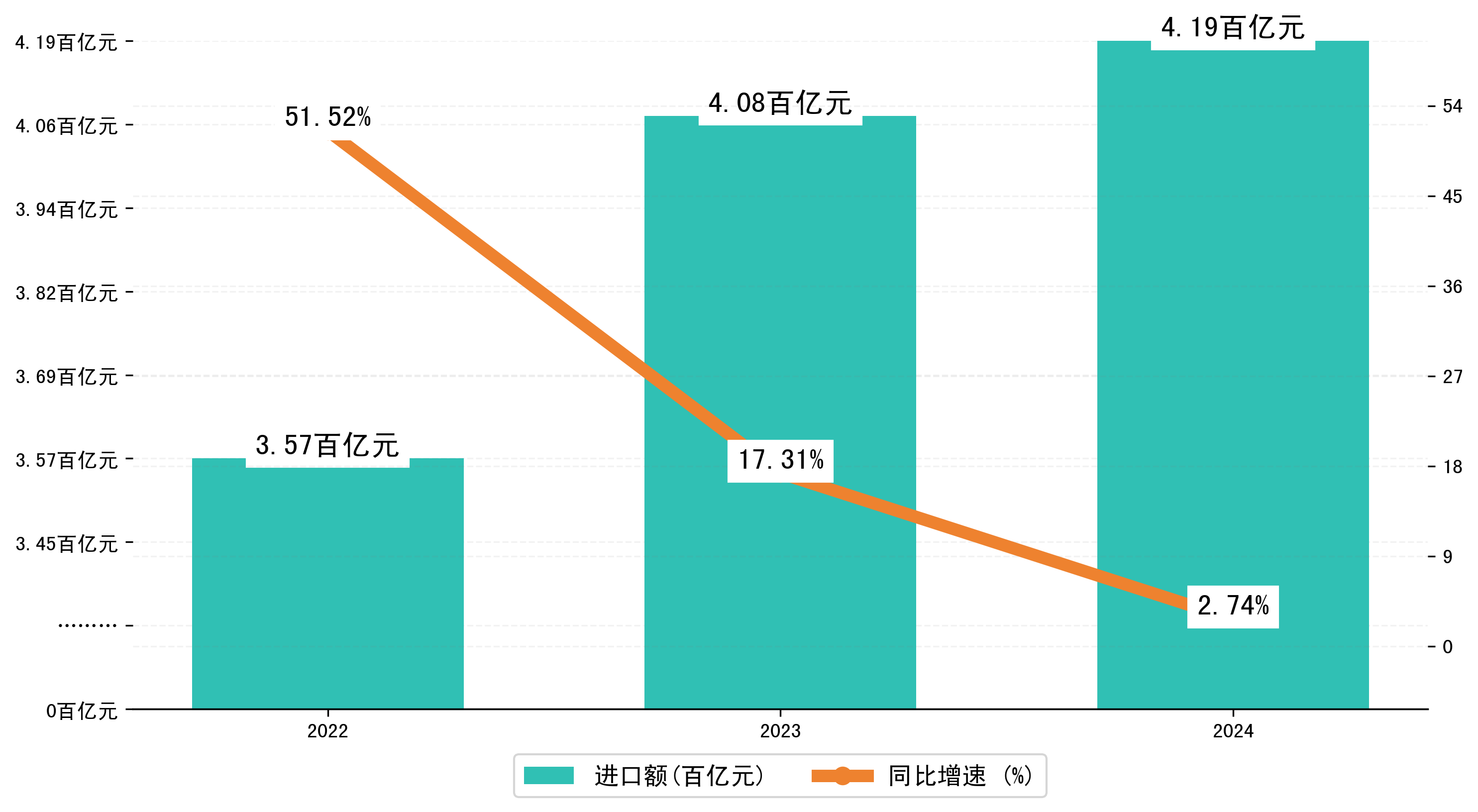 以人民币计,2024年1-10月海口市进口额为418,6787.167万元,相比上年同期增加了11,1541.7929万元,同比增加了2.70%。